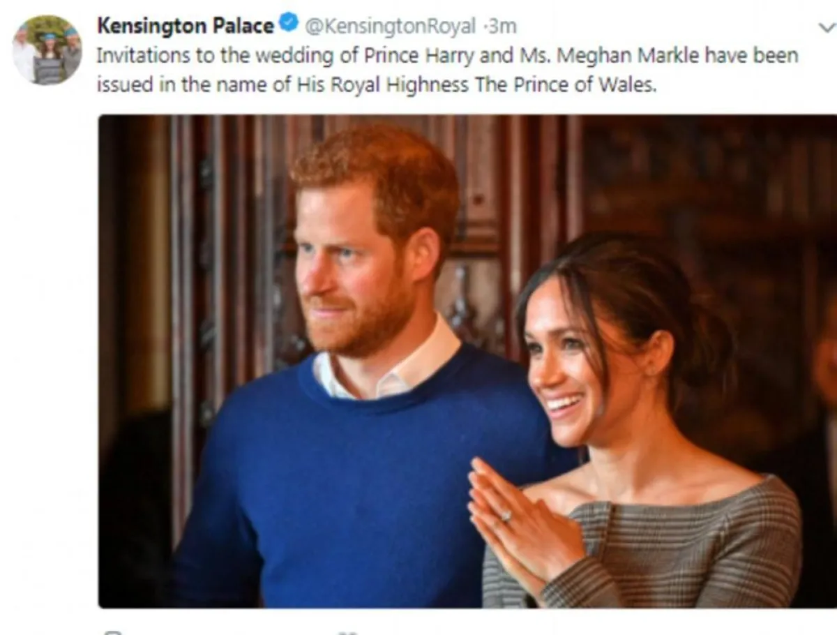 وكتب في الدعوة على الزفاف «يسر صاحب السمو الملكي أمير ويلز دعوة (... ) لحضور زفاف صاحب السمو الملكي الأمير هنري من ويلز على السيدة ميغان ماركل» بحسب «رويترز».