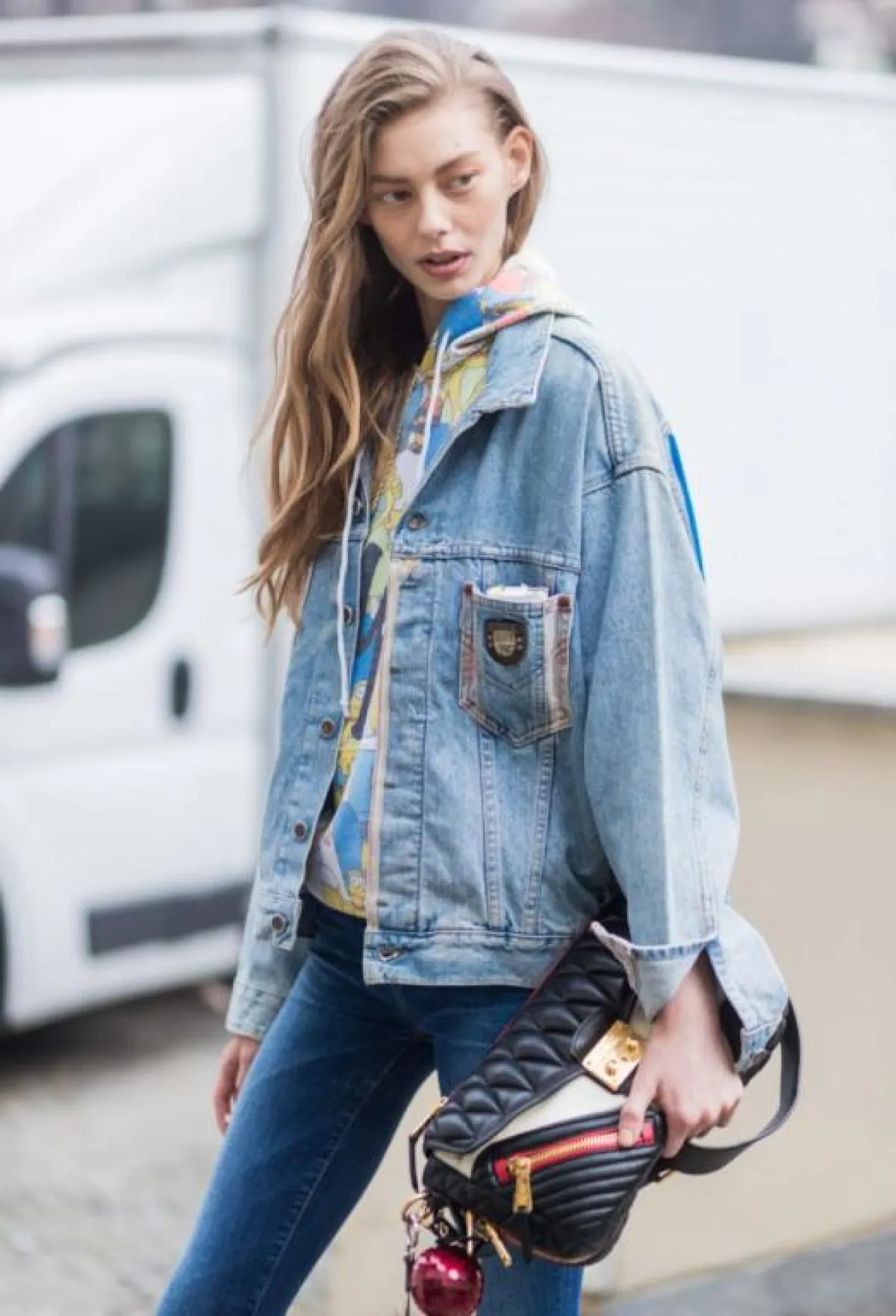 كما أن الاحتفاظ بقطعة جينز ذي رسومات مطبوعة تعتبر من أفضل طرق تنسيق جاكيت الجينز لإطلالة على الموضة لهذا احتفظي دائمًا بهذه القطعة في خزانة ملابسك ونسقيها مع بنطلون تزينه الرسومات كالذي اختارته بيلا حديد، أو مع آخر كلاسكيكي مع كعب عال لمناسباتك الليلية.