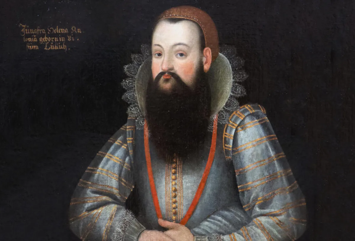 ولدت في القرن السادس عشر، وكانت هيلانا أنطونيا قزمة ملتحية وكانت قيّمة بما يكفي لرسم صورتها كعضو في المحكمة، واعتبرت امرأة كامله تمامًا وعضوة في المحكمة كما أنها حصلت على دور أكثر جاذبية، كان من الواضح أنها كانت ترتدي الزي النسائي في ذلك الوقت، وتصويرها المعاصر للحيتها الكاملة السوداء.