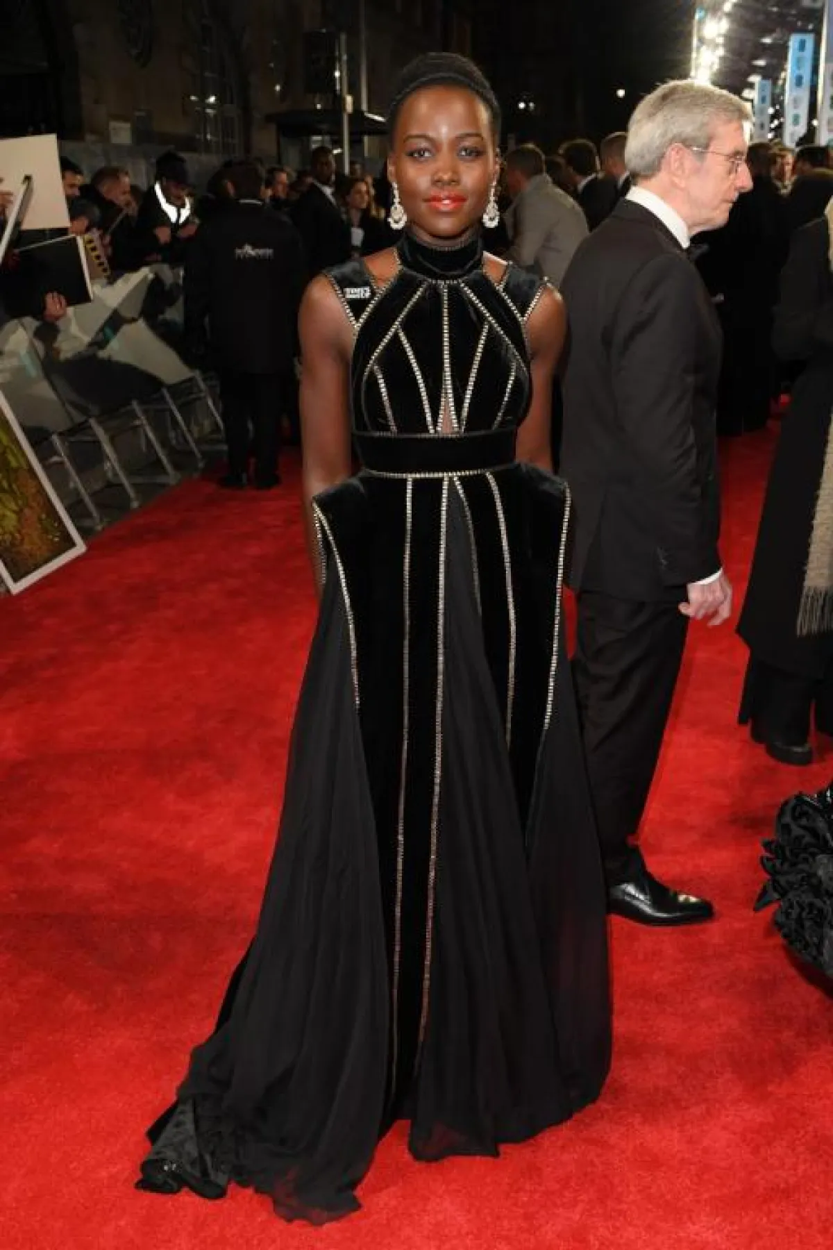 Lupita Nyongo في اطلالة فاخرة في فستان ذهبي وأسود من Elie Saab