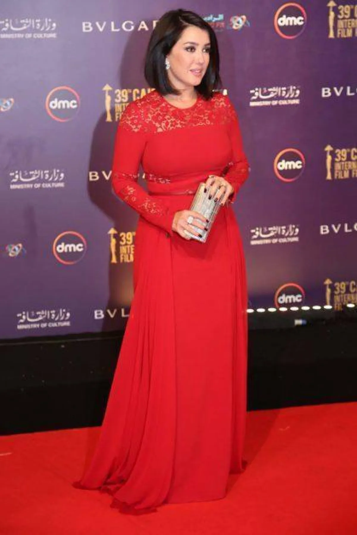 وهند صبري التي اختارت فستانًا باللون البنفسجي من إيلي صعب، بدت فيه غاية في الأناقة.