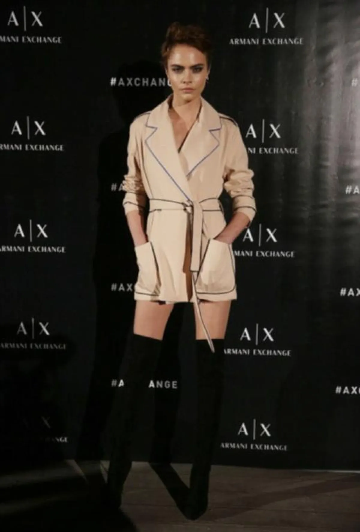 حضرت عارضة الأزياء والممثلة البريطانية كارا ديليفين Cara Delevingne حفل أرماني Armani الذي أقيم في ميامي الأمريكية، وحمل عنوان Armani Exchange 'New Energy, Same Spirit'.