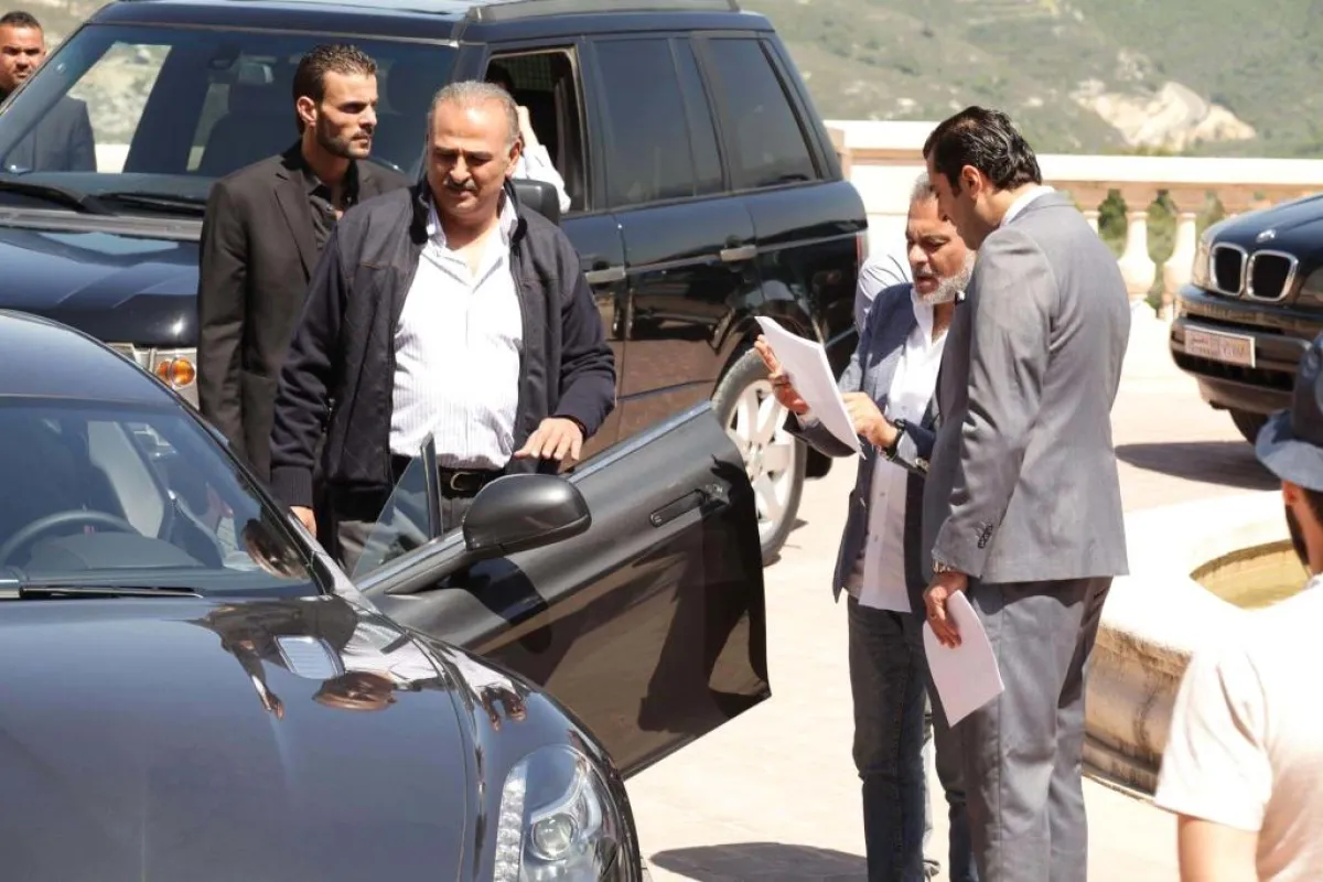 جمال سليمان مع باسم ياخور والمخرج حاتم علي في مسلسل «العراب نادي الشرق»