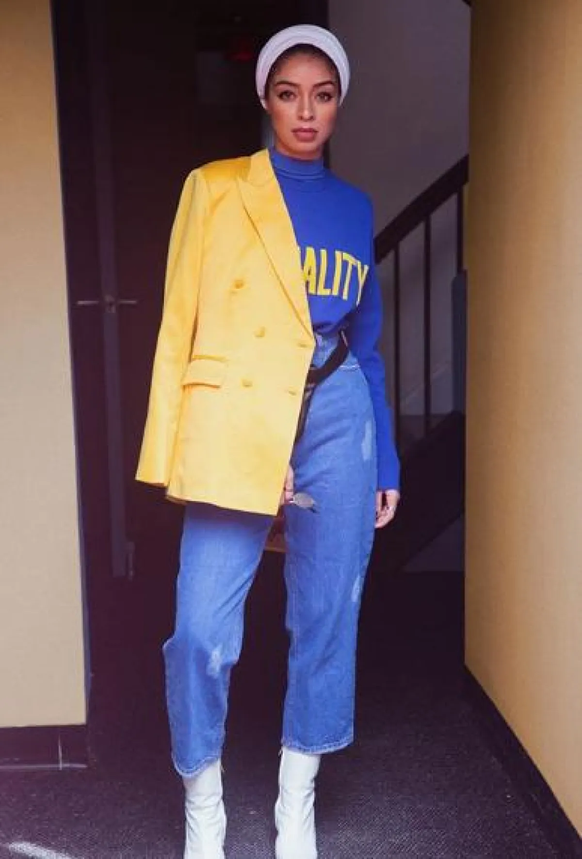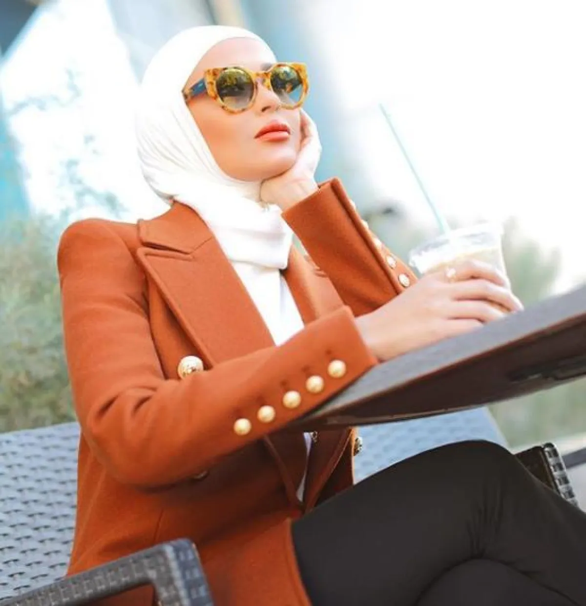 أو يمكنك تحويل هذه الصيحة إلى إطلالة كلاسيكية مع كعب عالي، وحقيبة يد فخمة أو كلاتش مع بلايزر بخامة الصوف الثقيل، وأزرار ذهبية، بالألوان الترابية للتناغم مع أشعة الشمس، على طريقة مرمر محمد.