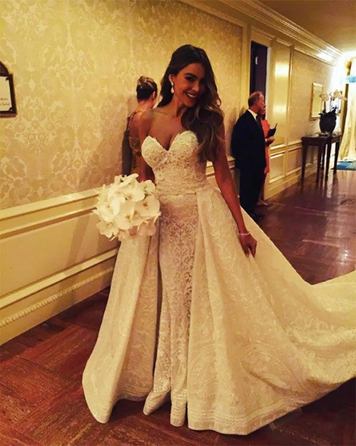 ويعد فستان زفاف النجمة صوفيا فيراغارا Sofia Vergara من أجمل الموديلات على مدار السنين، فعلى الرغم من مرور ثلاث سنوات على زفافها، إلا أنه يظل من أبرز أثواب الأعراس حتى الآن، والذي تميز بقصته الـStrapless مع التنورة الإضافية.