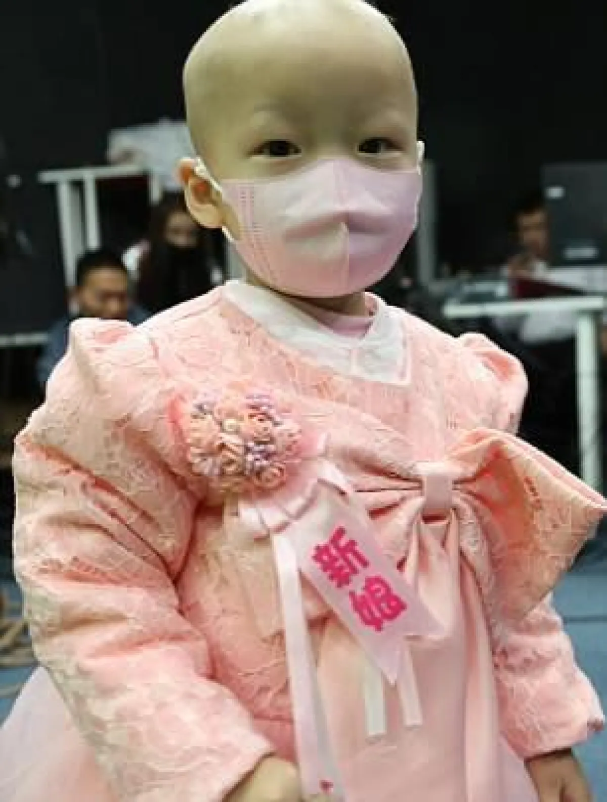 وقالت والدة الطفلة " يي تشين" : حلمي أن أراها مرتدية فستان الزفاف في يوم من الأيام ، ولكن بسبب مرضها الشديد الآن ، أخشى أنني قد لا أحصل على فرصة لرؤيتها.