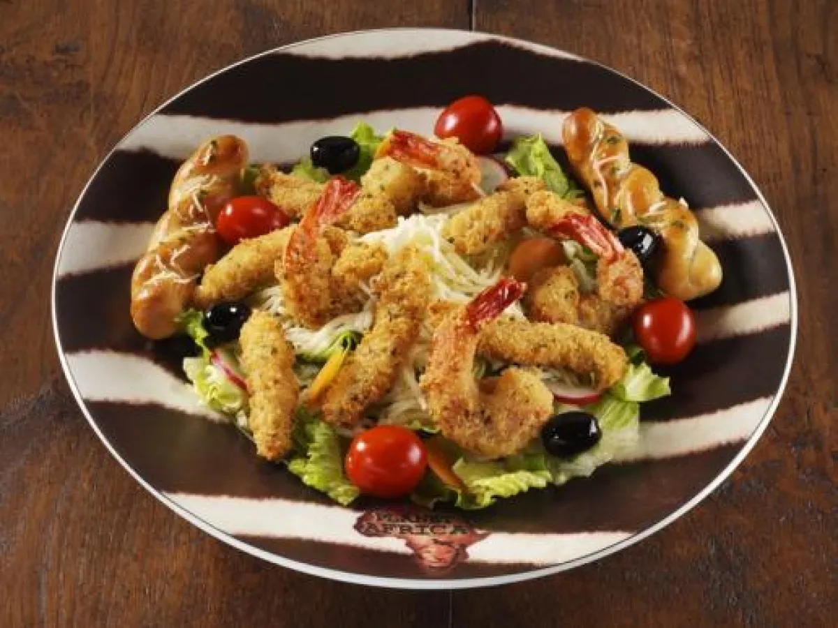 2 -يتبّل الروبيان والدجاج في خلطة توابل التحمير الجاهزة (بقسماط وجبن "بارميزان" وبقدونس وملح وفلفل وخل وبيض).