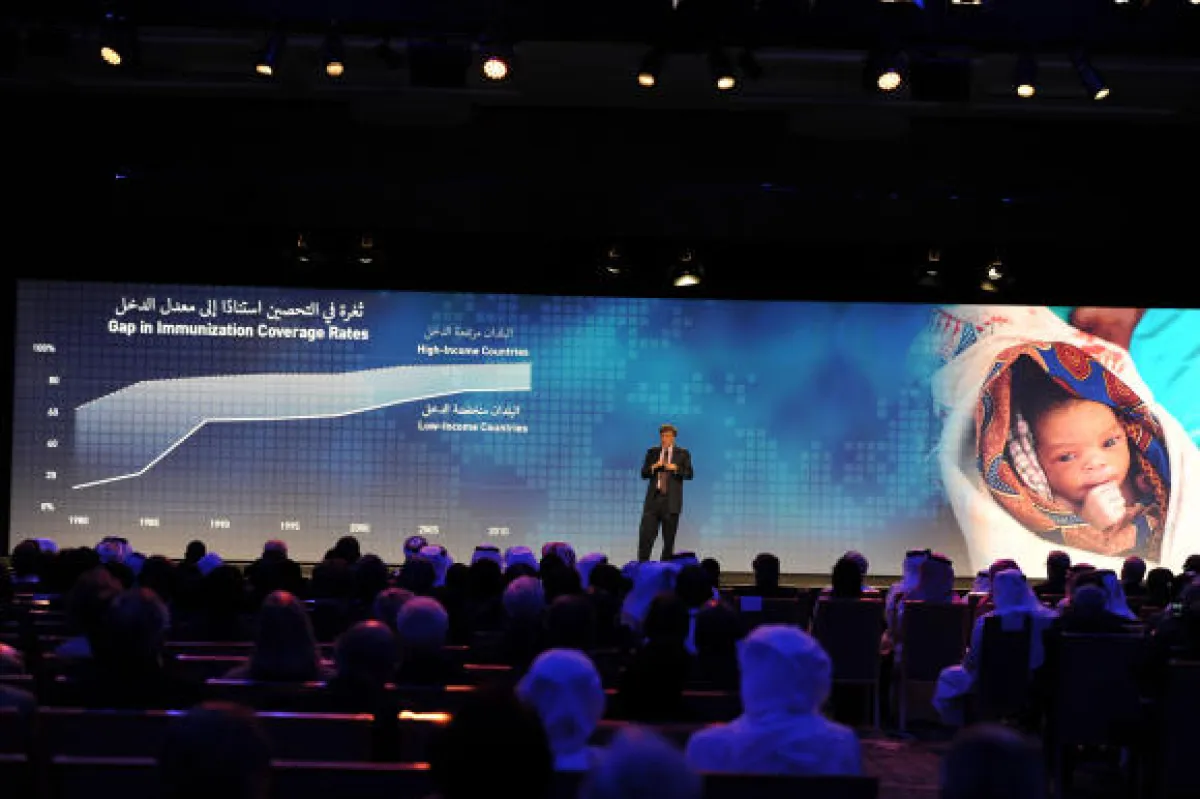وتحدث بيل غيتس الرئيس المشارك لمؤسسة بيل وميليندا غيتس قائلاً: كان حلمي في مايكروسوفت أن أضع جهاز كمبيوتر على كل مكتب وفي كل منزل. واليوم في مسيرتي المهنية الثانية في مجال الأعمال الخيرية، أكرس الكثير من وقتي في تحقيق حلمي المتمثل في توفير اللقاحات لكل طفل وأكثر ما يحمسني هو التقدم الذي نحرزه. ولدينا مجموعة متزايدة من المتبرعين والمناصرين الذين ساهموا بأصواتهم وأموالهم". واختتم قائلاً : "اليوم نعيش في عالم لا يستطيع الطفل الذي يولد في دولة فقيرة الوصول إلى نفس اللقاحات المتاحة للطفل الذي يولد في دولة غنية. وفي الوقت نفسه، فإننا نعيش في عالم نمتلك فيه القدرة على رفع هذا الظلم. فكل الحلول في أيدينا من لقاحات فعالة وابتكارات جديدة وشراكات قوية".