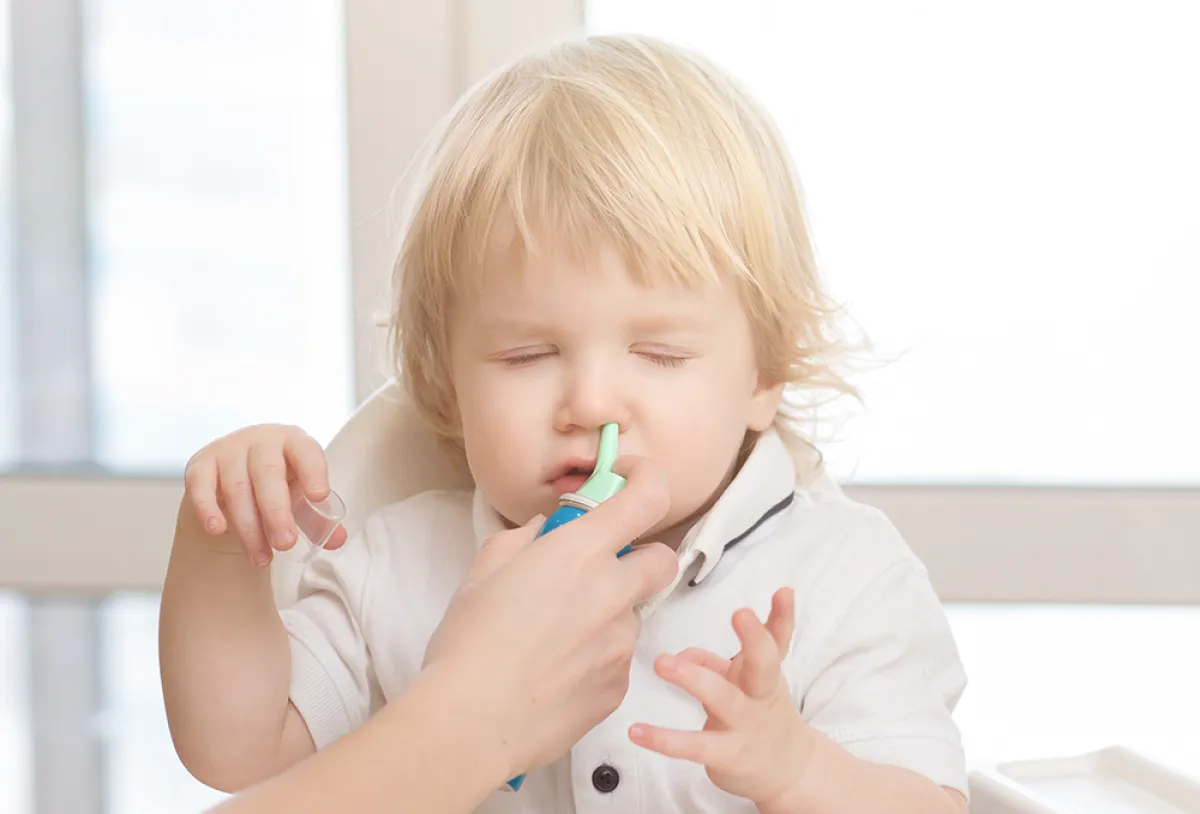 • يجب تعريض الطفل لبخار الماء عن طريق تبخيرة للأنف.