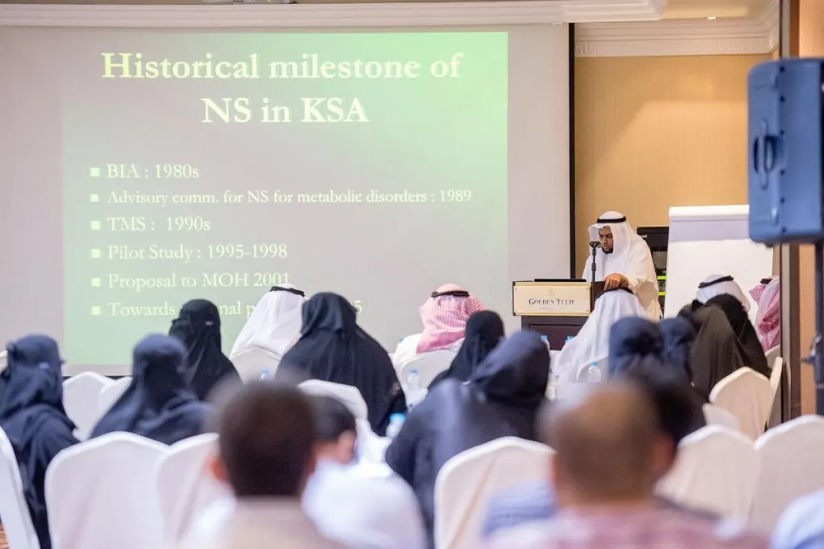 وأوضح «رهبيني» أن الورشة أوصت كذلك بالمحافظة على نجاح برنامج الفحص المبكر للمواليد، والذي أقرّ بمرسوم ملكي عام 2005م، لفحص 17 مرضًا وراثيًا لأي مولود من أمراض التمثيل الغذائي وقصور الغدد الصماء، كقصور إفراز الغدة الدرقية والغدة فوق الكلوية، وتوفير الأجهزة اللازمة لتشخيص بعض أمراض التمثيل الغذائي في المستشفيات الصغيرة والمتوسطة؛ لإجراء التدخلات المبكرة، وحماية المرضى من أي مضاعفات جانبية، وتوفير الأدوية المهمة لعلاج الأعراض الحادة في تلك المستشفيات؛ حتى يمكن التدخل المبكر قبل نقل المريض إلى مستشفى مرجعي، وذلك مثل الأدوية المهمة لعلاج ارتفاع الأمونيا أو بعض الأحماض العضوية.