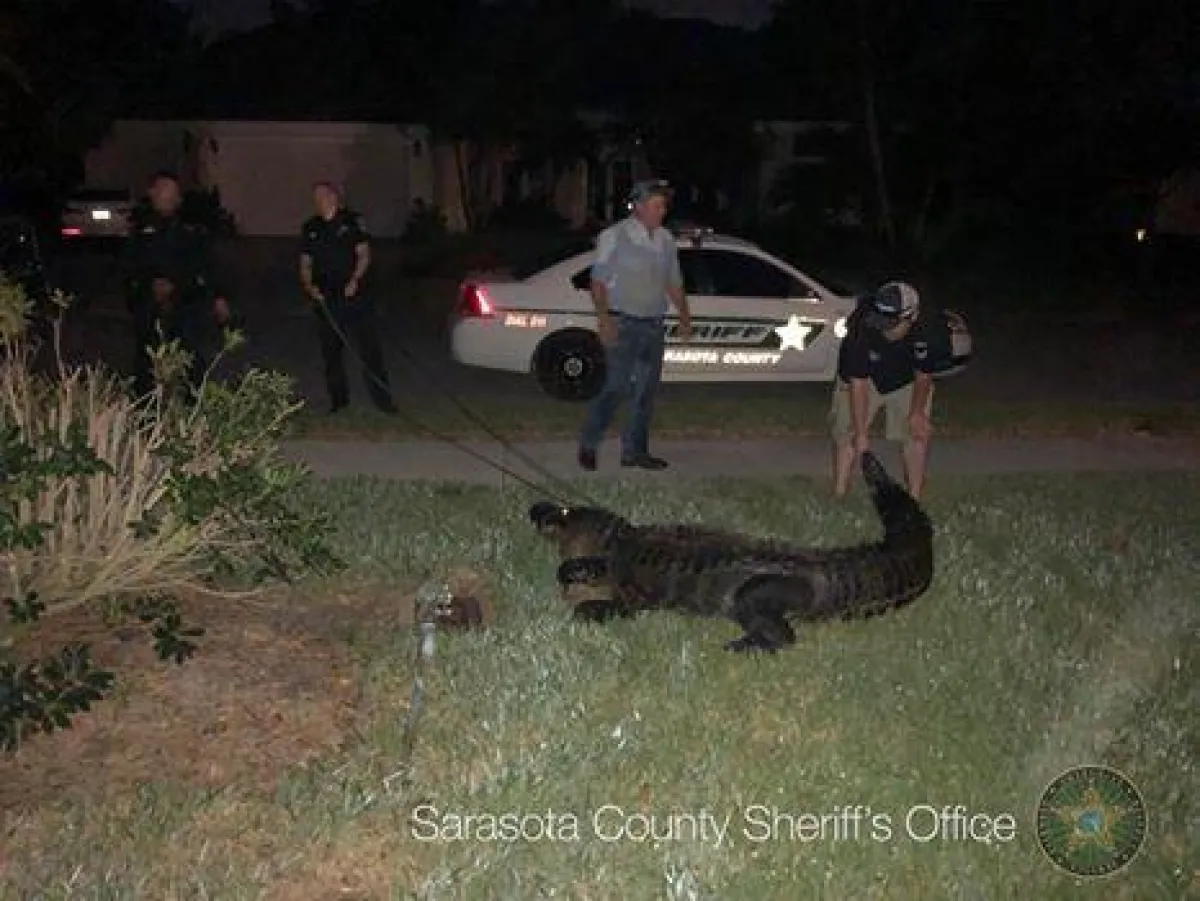 وكان سكان في بلدة نوكوميس على ساحل فلوريدا طلبوا مساعدة الشرطة بعد اكتشاف وجود التمساح.