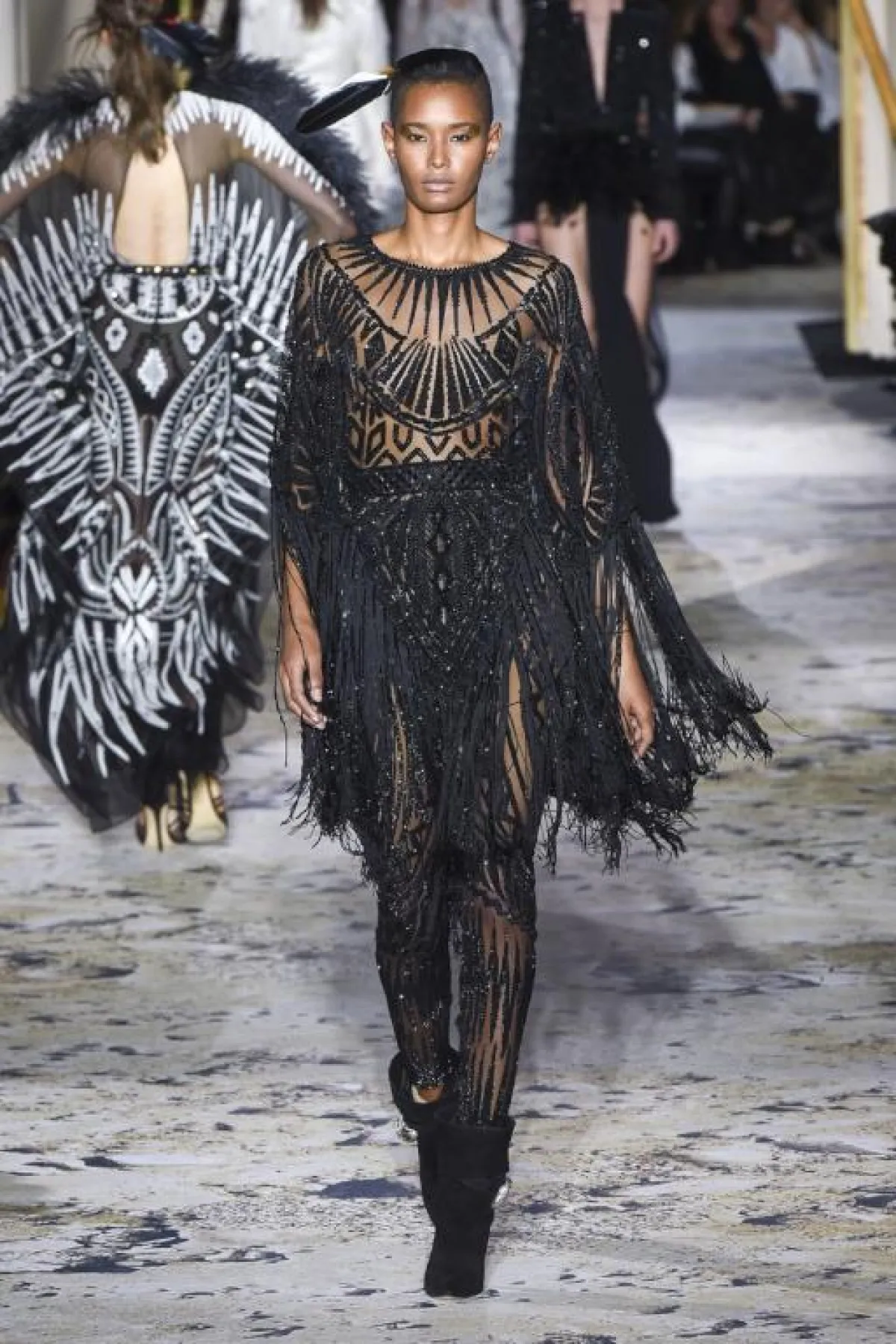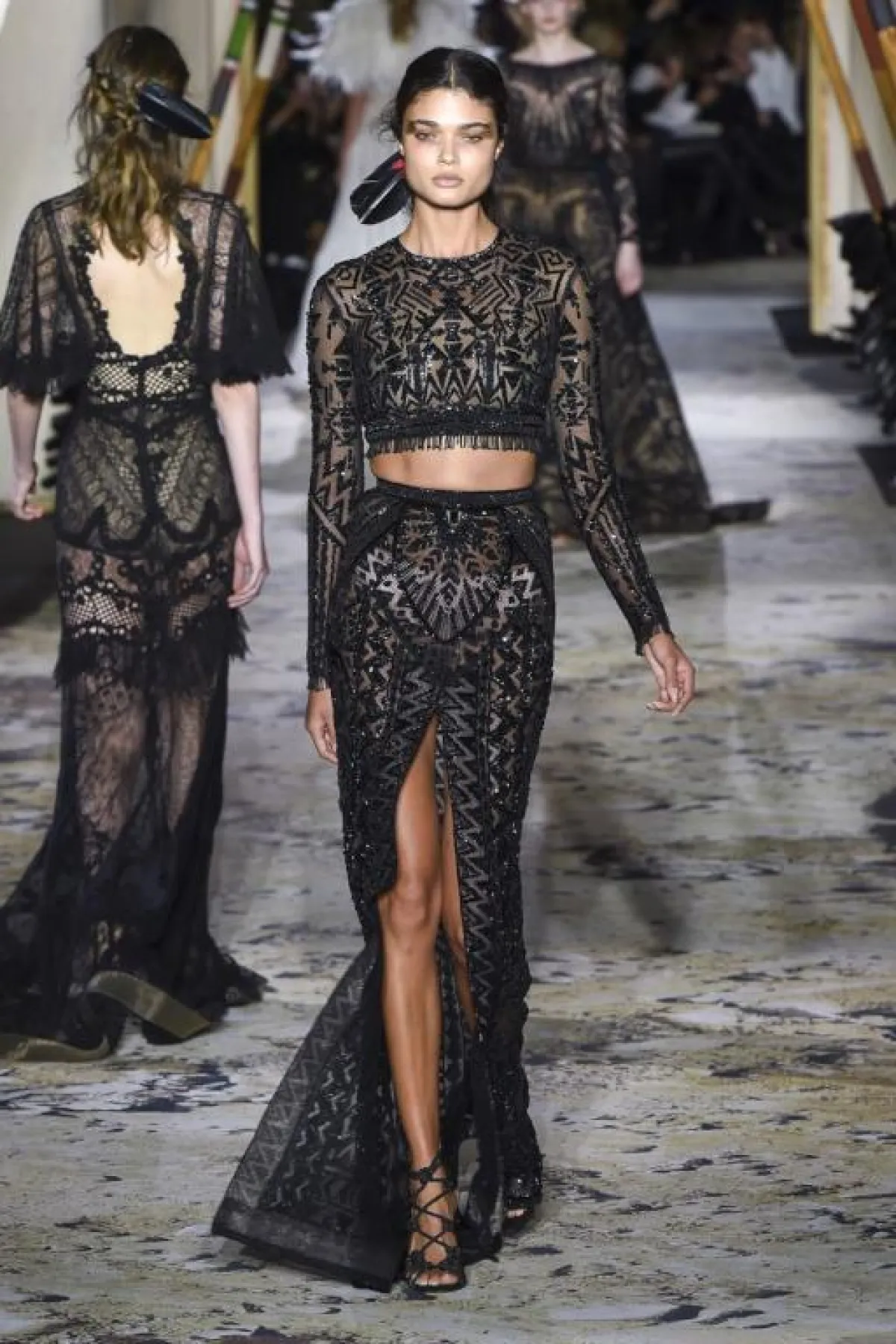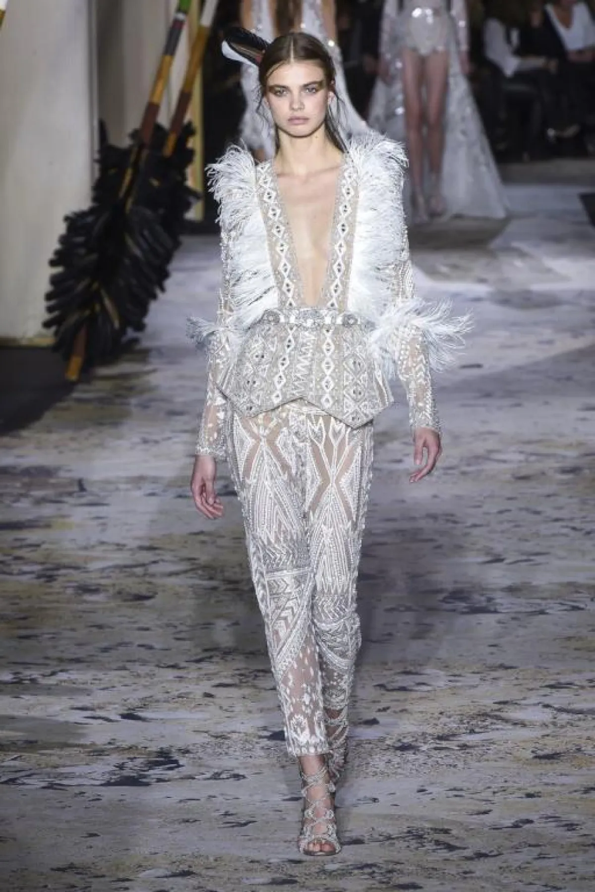 ولمن تهتم بالتفاصيل سيعجبك حتماً هذا الحزام المصنوع من الريش الذي كان في أغلب مجموعة زهير مراد هذا العام، والذي جاء مختلفاً من حيث الحجم والشكل، وطريقة تنسيقه مع الفساتين بشكل مميز.