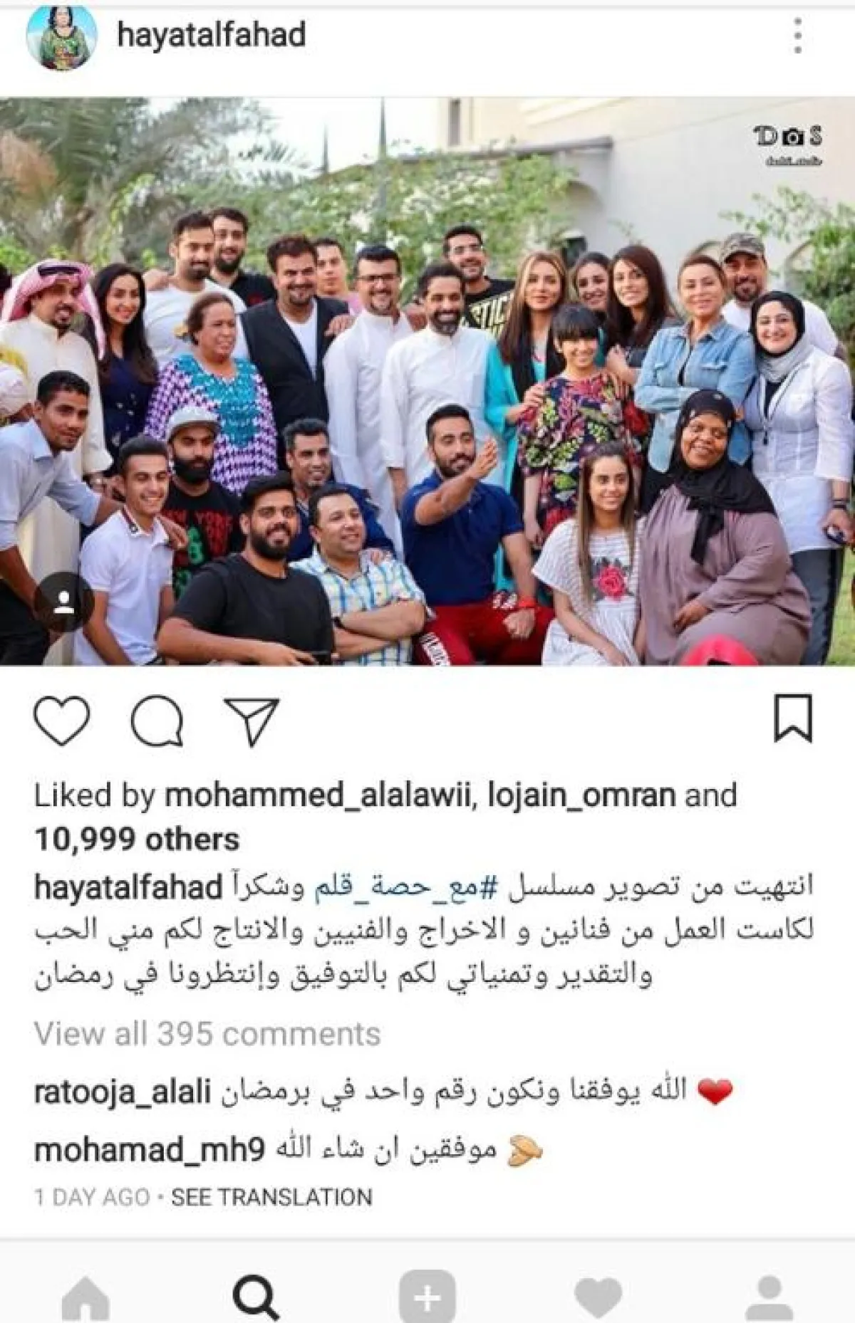 يشار إلى أن الفنانة حياة الفهد نشرت بالأمس صورة مع فريق عمل مسلسل "حصة قلم" وأشارت إلى أنه تم الإنتهاء من تصويرها ودعت المشاهدين إلى مشاهدته في الموسم الرمضاني 2018 . كما نشرت قبل 4 ساعات صورة مع الفنانة الهام العلي وتمنت لها التوفيق.