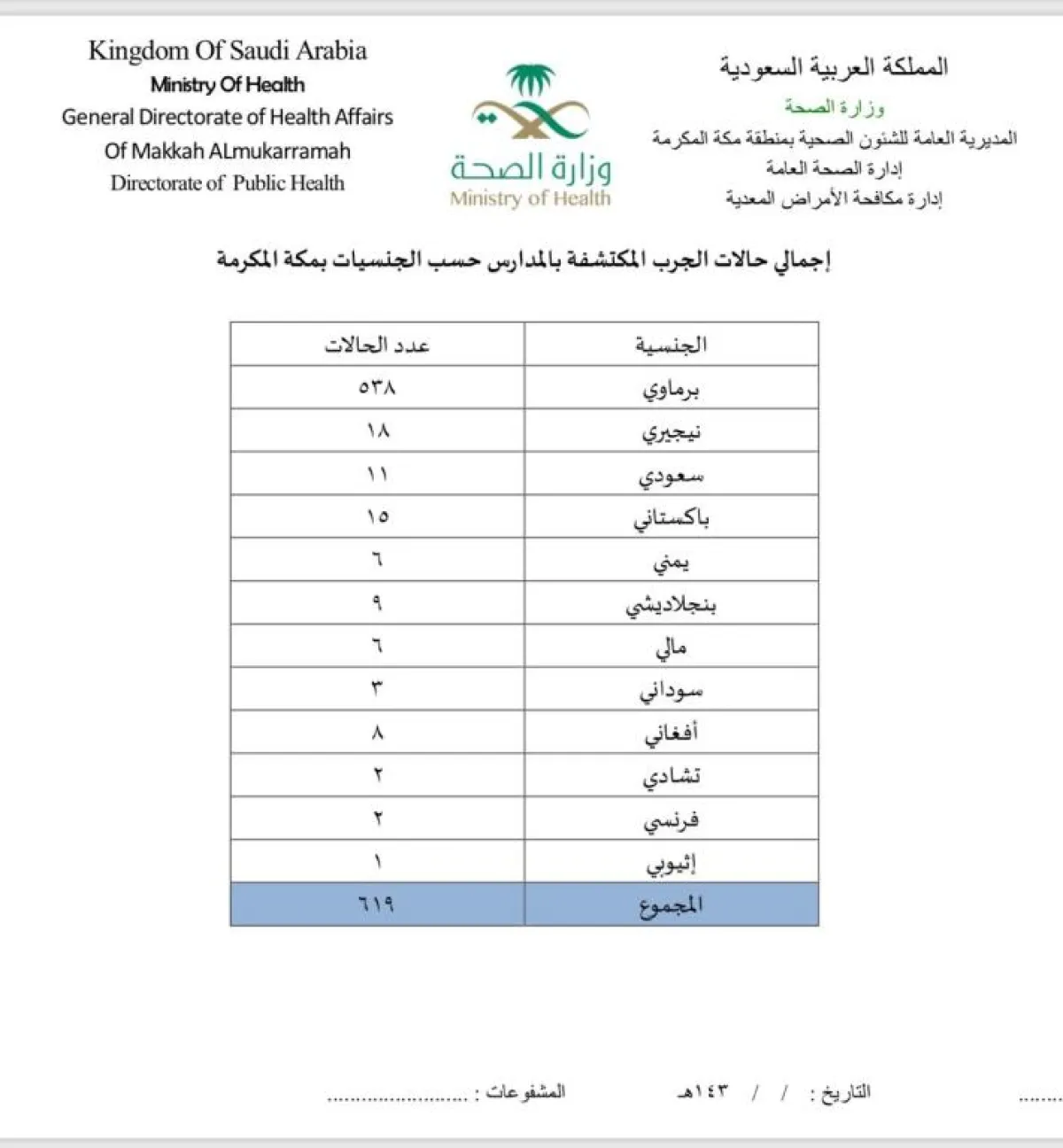 في الوقت ذاته، أكّدت وزارة التعليم متابعتها حالة ظهور مرض الجرب الطارئة قي بعض مدارس مكة المكرمة بشكل يومي.