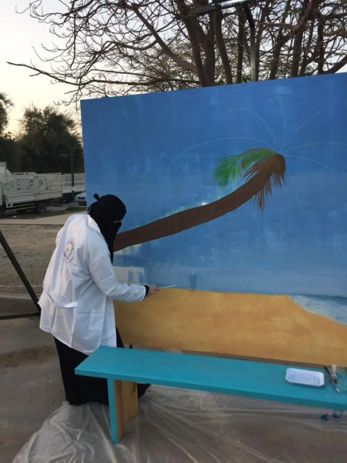 التشكيلية أسماء العمري تحدثت عن تجربتها قائلة: شاركت بعمل جدارية رسم حي أمام الجمهور طوال أيام المهرجان وشاركت بعمل لوحة فنية للسور عبر إعادة تدوير لعلب الماء في واجهة المهرجان، وسبق وشاركت بمهرجانات عدة بالجبيل الصناعية مثل مهرجان تراث الشعوب أيضاً، والمهرجان الثقافي بالفناتير والمعرض الفني بمجمع (غاليريا)، والمعرض السعودي الأول بالجبيل البلد والذي أقيم في مبنى بلدية الجبيل ومهرجانات أخرى.