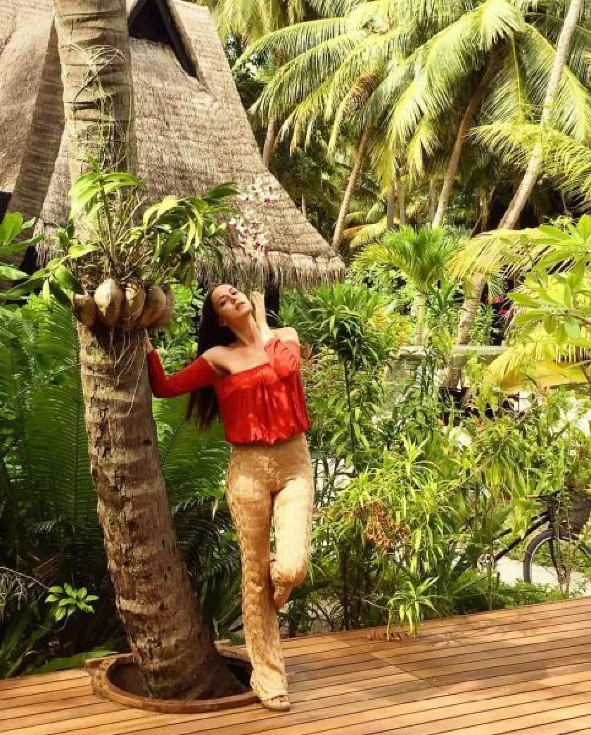 - السراويل عالية الخصر بمختلف الخامات، قطعة لا تفارقها في رحلاتها وجلسات التصوير، وقد نجحت في إبراز طول ساقيها، وعززت مظهرها الرشيق.
