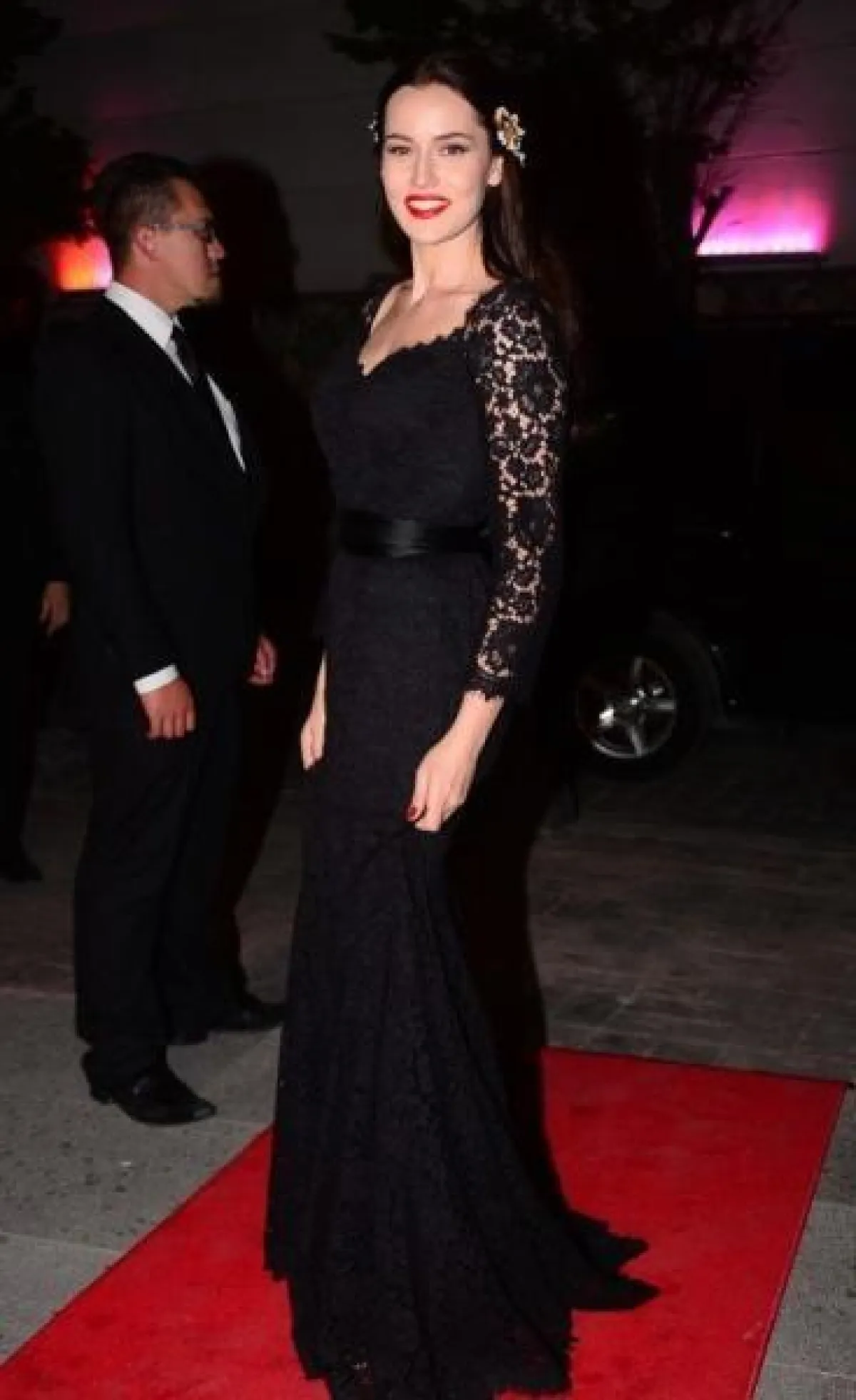 - الفستان الطويل المزدان بشق طويل يعلو الركبة، أيضًا من الحِيل التي لجأت إليها النجمة التركية، لتُبرز طول قامتها في حفل مهرجان كان السينمائي الدولي، وكان من توقيع المبدع اللبناني العالمي جورج حبيقة Georges Hobeika.