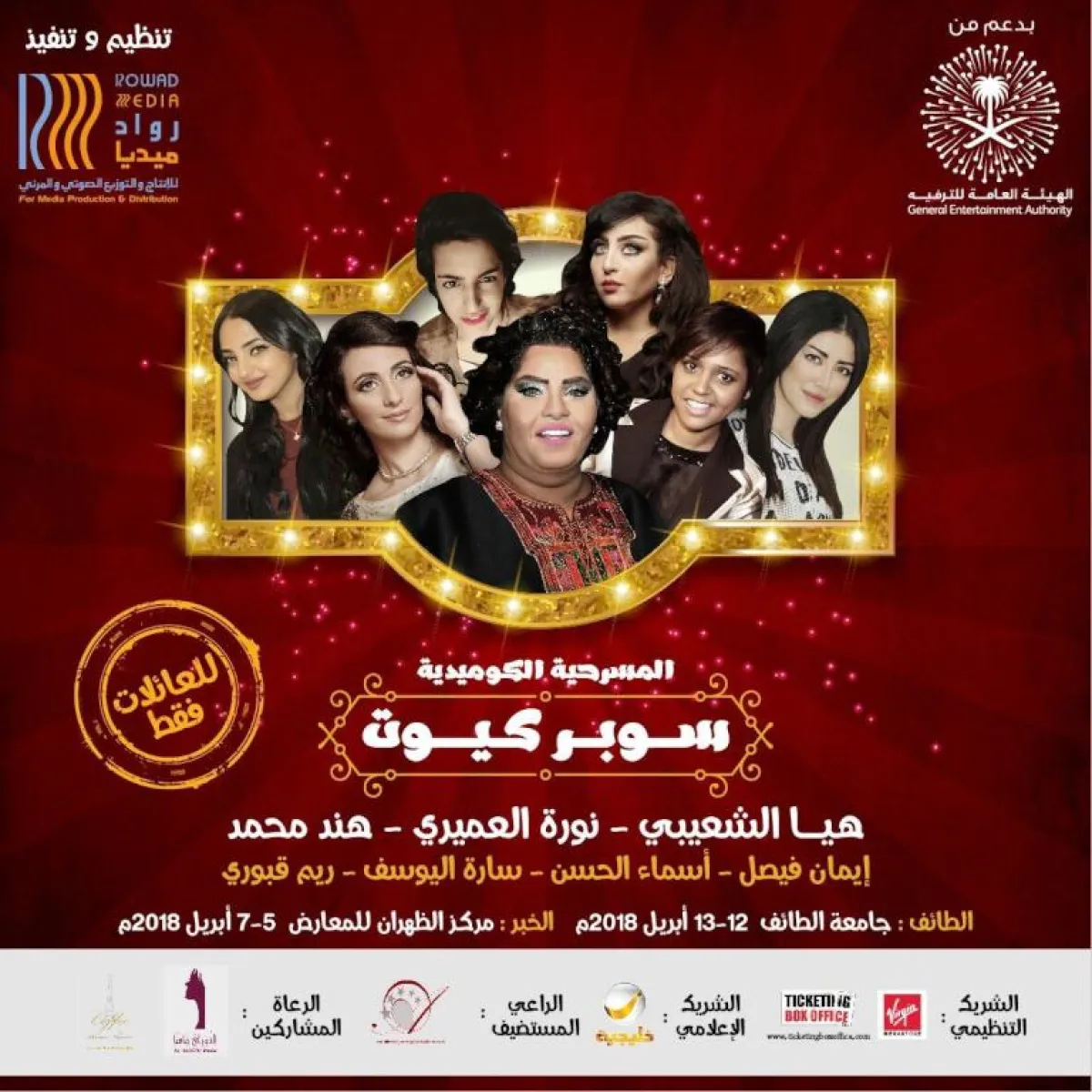 وستقام المسرحية غدًا بالرياض على مدى ثلاثة أيام من الخامس إلى السابع من إبريل الحالي، وسوف تستمتع العائلات بالمحتوى الهادف والكوميدي المنتظر، وتم طرح أسعار وفئات التذاكر التي تبدأ من "75 – 475" ريالاً سعوديًا.