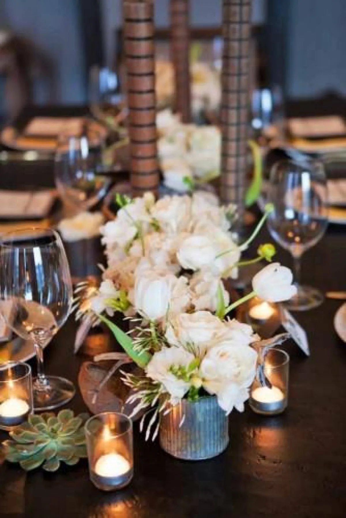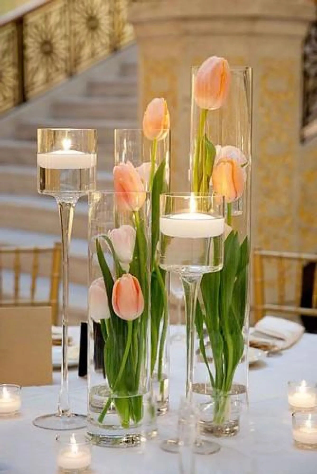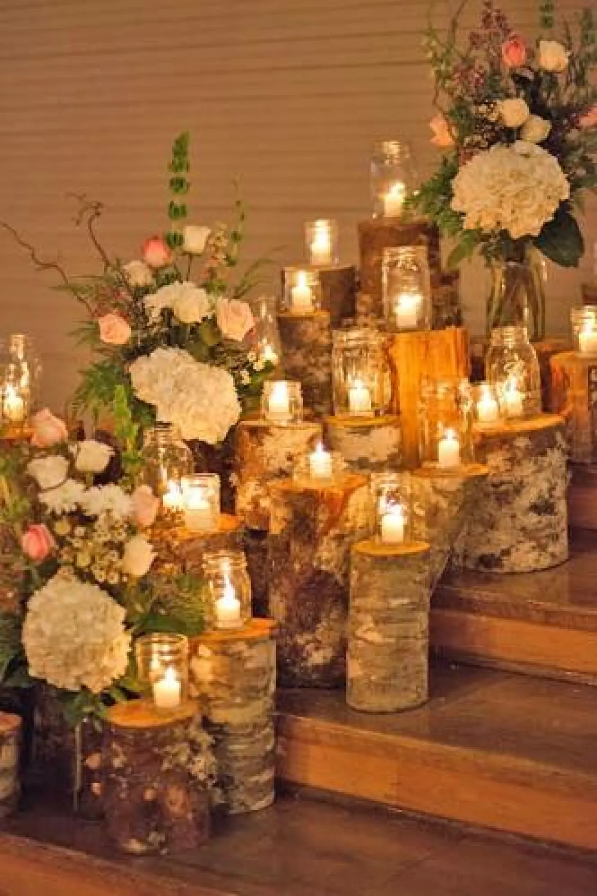 أضواء الشموع تضفي أجواء دافئة في القاعة، خاصًة إذا تم دمجها مع الزهور النرجسية، يمكنك اعتماد هذ الديكور لمناسبات الشتاء، واختيار ورود بألوان زهرية وبيضاء إذا كان فرحك بالصيف.
