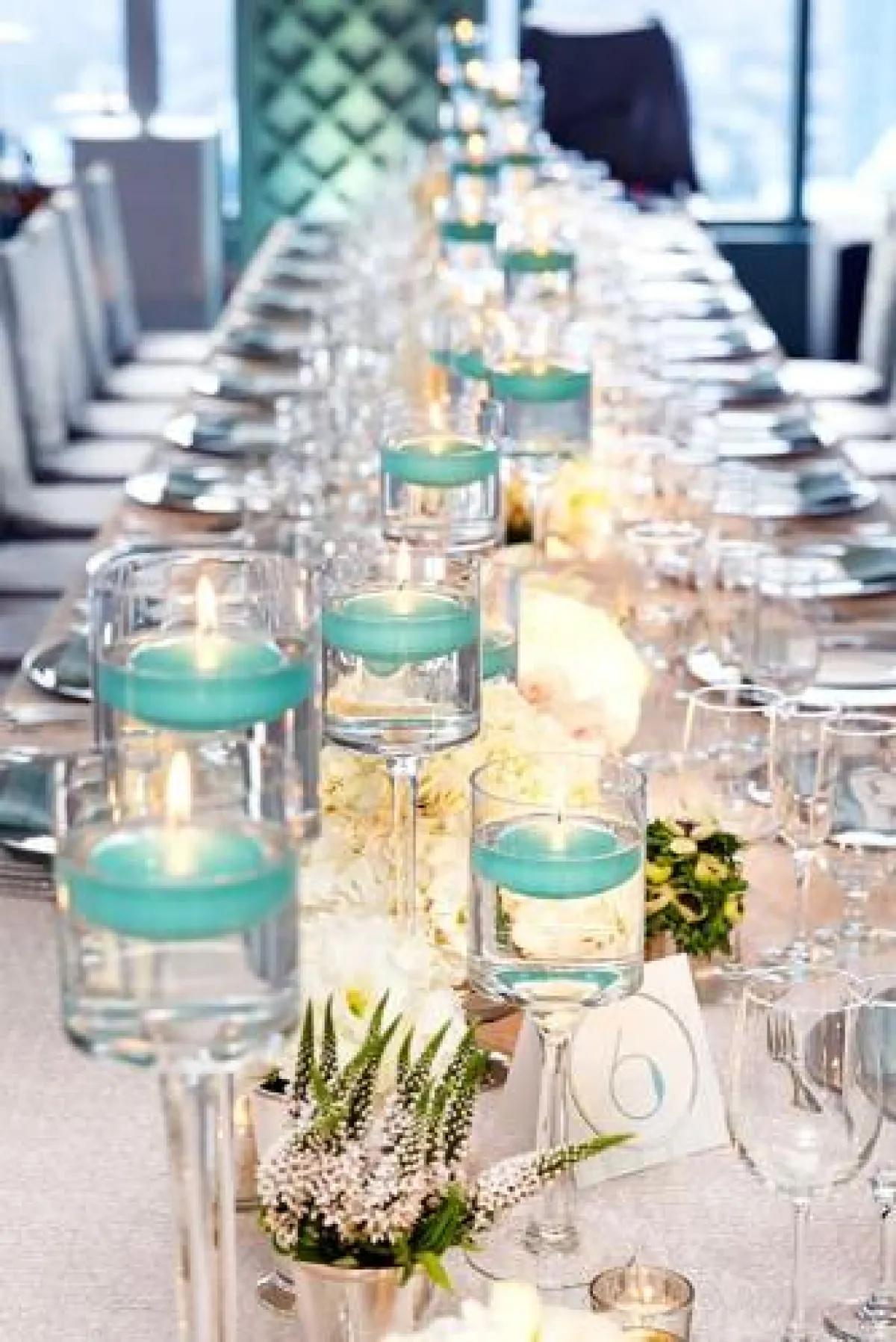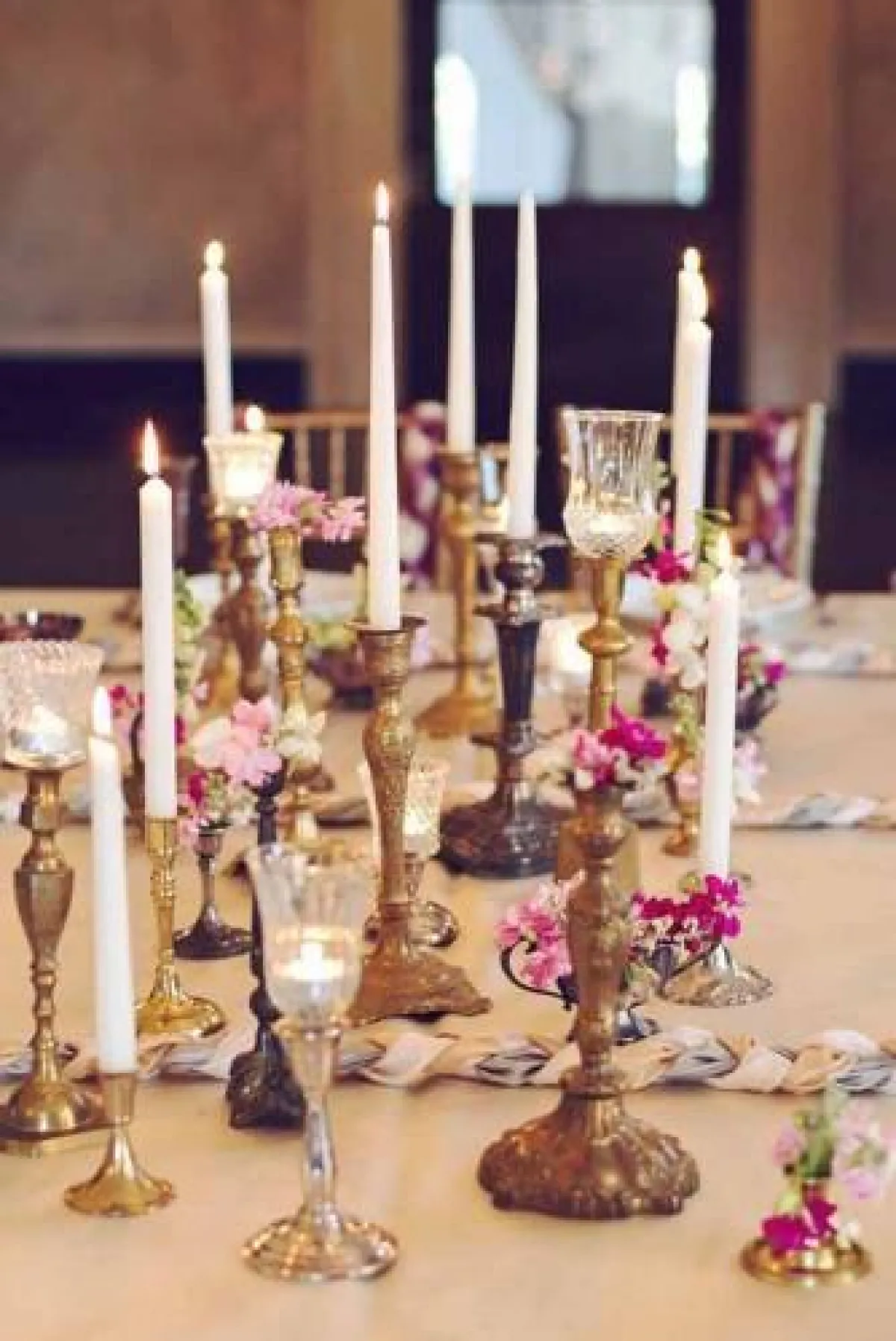وضع الشموع على زجاج عاكس "المرآة" يناسب بشكل كبير القاعات صغيرة الحجم، إذ انعكاس المرآة يمنح المكان وسع مضاعف.