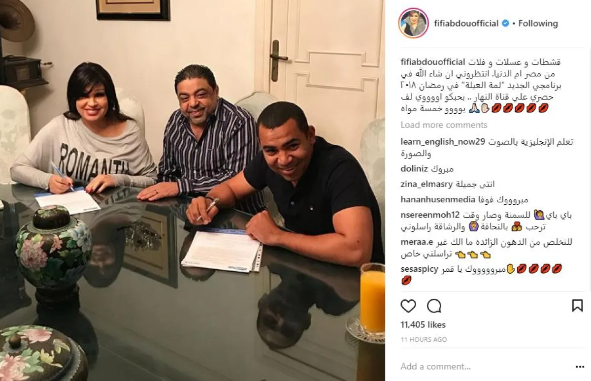 ونشرت فيفي عبده صورة توقيع عقدها مع قناة النهار عبر حسابها على موقع انستقرام، وعلقت قائلة: قشطات وعسلات وفلات من مصر أم الدنيا، انتظروني إن شاء الله في برنامجي الجديد "لمّة العيلة" في رمضان 2018 حصريًّا على قناة النهار".