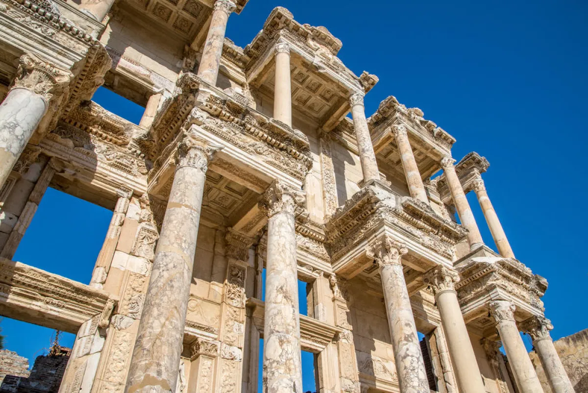 | مكتبة "سيلسوس": تُعتبر آثار "أفسس"، من بين المعالم السياحية الشهيرة على الساحل الغربي. كانت مدينة "أفسس" ذات يوم تشتهر بمعبد "أرتيميس"، أحد عجائب الدنيا السبع في العالم القديم، وقد دُمِّرت المدينة في سنة 401. ومع ذلك، يمكن للسائحين رؤية بعض الأبنية اليوم، بما في ذلك المسرح الكبير ومكتبة "سيلسوس" التي بُنيت حوالى سنة 125 لتخزين 12000 مخطوطة، ولتكون بمثابة قبر ضخم لسيلسوس، حاكم آسيا. وكان أعيد بناء الواجهة بعناية في السبعينيات.