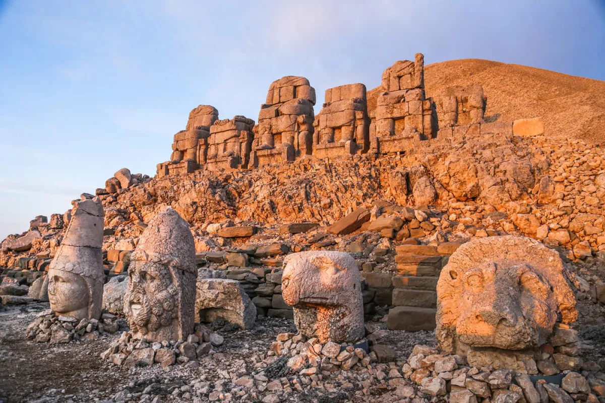 | "مونت نمروت": يبلغ ارتفاع هذا الجبل 2.134 مترًا في جنوب شرق تركيا، بالقرب من مدينة "أديامان". في سنة 62 قبل الميلاد، بنى الملك أنطيوخوس ثيوس من كوماجيني، مقبرة محاطة بتماثيل ضخمة لنفسه، فضلًا عن أسدين على قمَّة الجبل، التي توفِّر إطلالة رائعة على الجبال المحيطة. عامل الجذب الرئيس هو مشاهدة شروق الشمس.