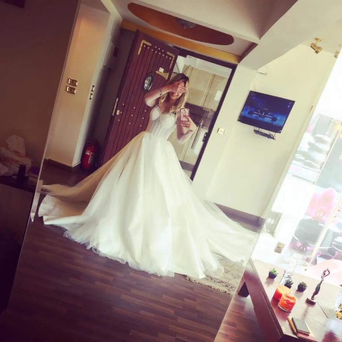 مي حلمي خطيبة نجم برنامج أراب أيدول محمد رشاد، خالفت الأعراف المصرية الكلاسيكية، ونشرت صورة لها بفستان الزفاف وعلقت عليها قائلة: أنا هبقى عروسة، فاضل اللمسات الاخيرة.