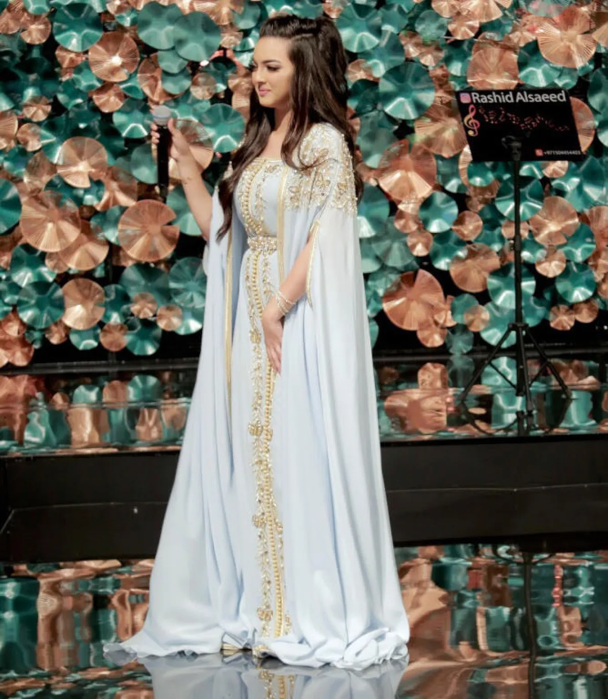 و كذلك الفنانة المغربية جميلة البدوي التي تحرص على أناقة القفطان في عدد من حفلاتها لإحياء أفراح العائلات بدبي