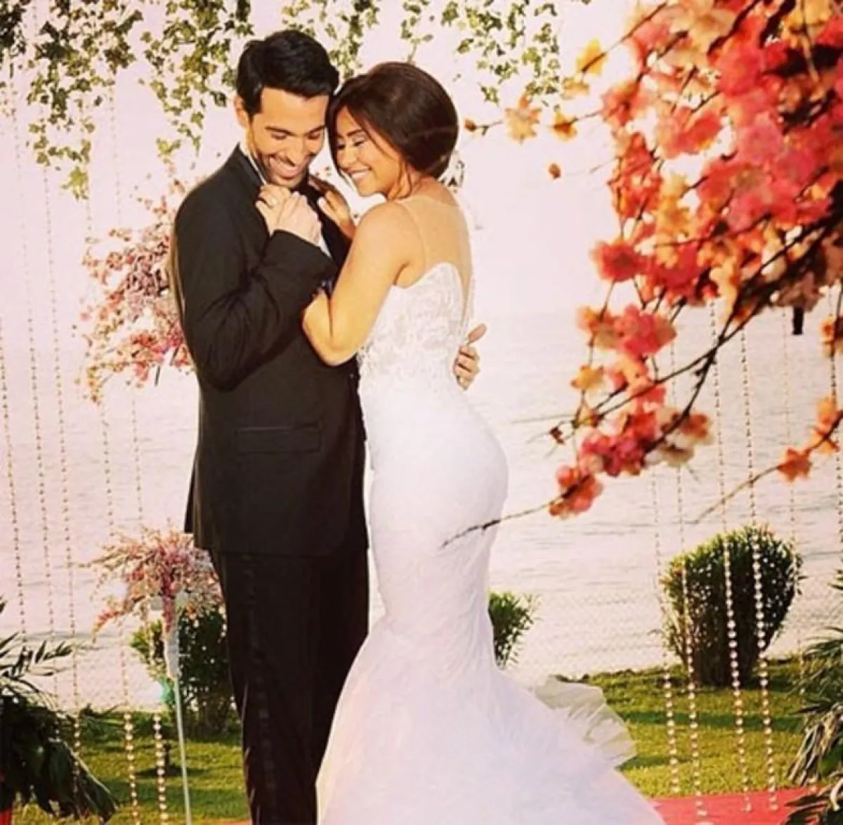 ظهرت النجمة المصرية شيرين عبد الوهاب بفستان الزفاف إلى جانب المذيع اللبناني محمد قيس، وأطلت شيرين يومها بفستان زفاف من تصميم اللبناني نيكولا جبران، أتى الفستان بتصميم السيرين أو قصة السمكة وزين بأحجار السوروفسكي.