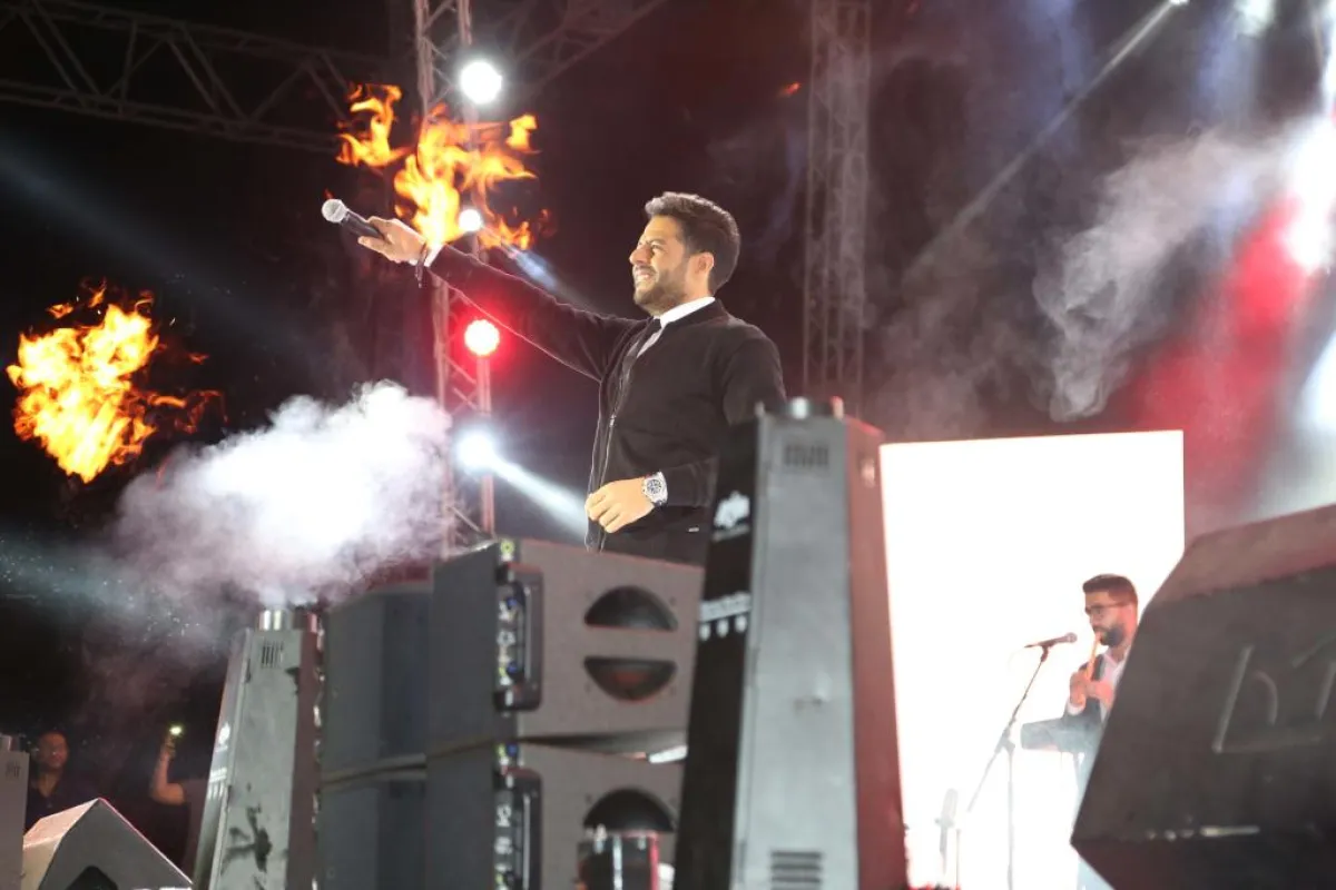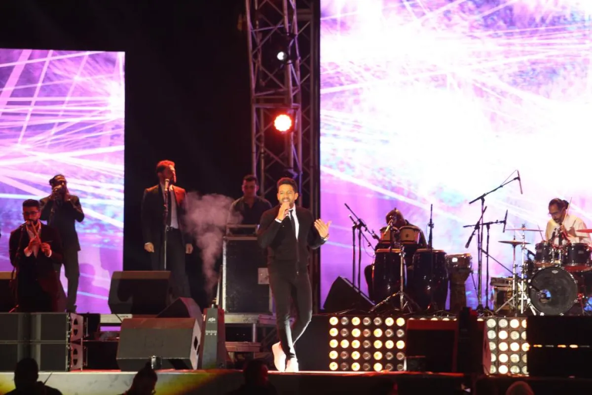 ليعود بعدها إلى الغناء فغنّى "اللى اختاره قلبى"، "جرى إيه"، ومن آخر ألبومه له غنى " ما بلاش"، أتبعها بأغنية "حاجة مستخبية". وبعد أن شاركه الجمهور الأغنية قال: "صوتكو حلو وقوي. السنه الجايه تيجو ذا فويس وحختاركم كلكم"؟، ليغنّي بعدها مجموعة من أغنياته القديمة والجديدة، فغنى "وحده وحده"، "من قلبي بغني"، "بعدنا ليه"، "بقت عادة"، "ناويها" "آخر كلام"، " بتضحك"، "بحبك كل يوم أكثر"، و"أم الدنيا"
