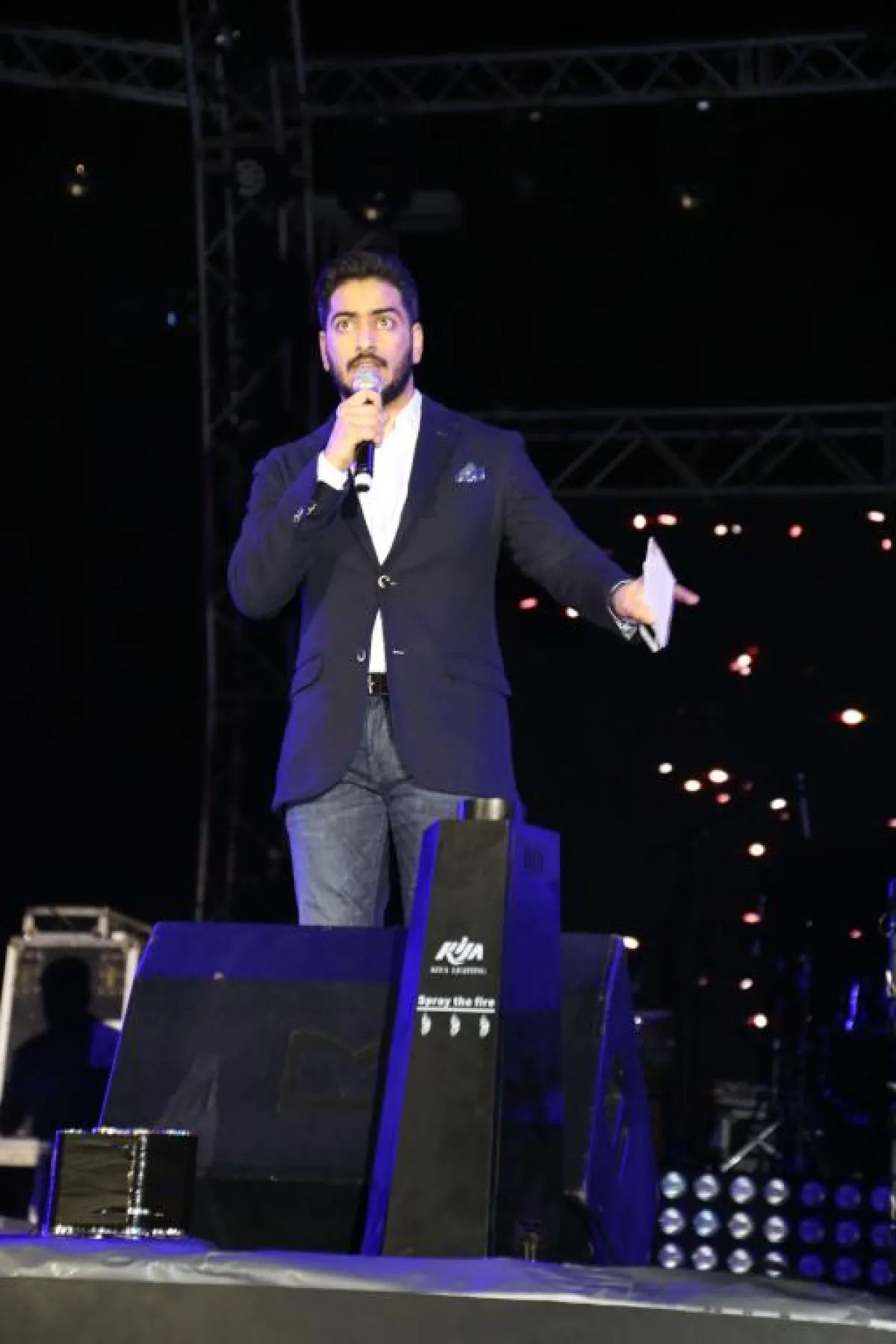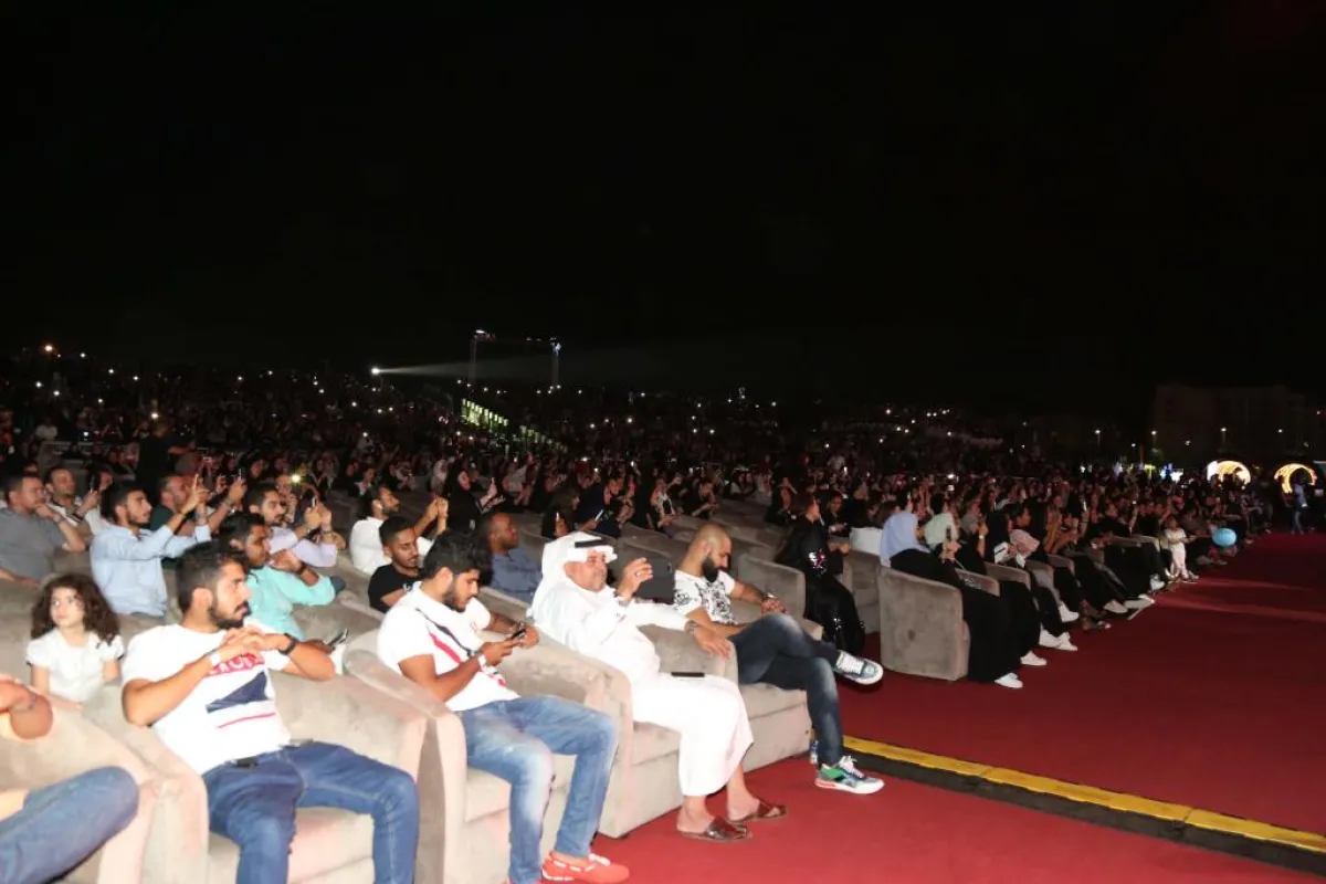 عندما وصلنا إلى موقع الحفل كانت أكثر من نصف الكراسي خالية، فدارت همسات بين الإعلاميين بأن عدد الحضور سيكون قليلاً جداً قياساً بجمهور حفلة الفنان تامر حسني، خاصة أن الساعة تجاوزت الحادية عشرة، ولا زال الجمهور يتوافد إلى موقع الحفل في انتظار وصول الفنان محمد حماقي، الذي يفترض أن يبدأ الغناء الساعة 11. وعندما سألنا عن السبب قيل بأن البوابات مكتظّة بالجمهور، وأن الفنان محمد حماقي سيكون على المسرح عند الساعة 11.30. وبالفعل، ما أن أعلن المذيع فيصل الزهراني عن اسم الفنان حتى بدأ الجمهور يردد اسم "حماقي حماقي". ألقينا نظرة على الكراسي وإذا بها لا يوجد كرسيّ شاغر، وأضواء الجوالات بدّدت الظلام الذي سبق إطلالة الفنان محمد حماقي على أصوات الترحيب به وترديد اسمه، ليبدأ السهرة بأغنية "نفسي أبقى جنبو"، ومع نهايتها، وبعد أن سمع وشاهد تجاوب الجمهور معه من أول أغنية والصفيق الحاد، قال: "الله . جده غير.. أنا النهارده عرفت معناها. حاجه ثانية، والنهارده حفلة استثنائية. حغني أغاني 15 سنة. وللصبح حنغني".