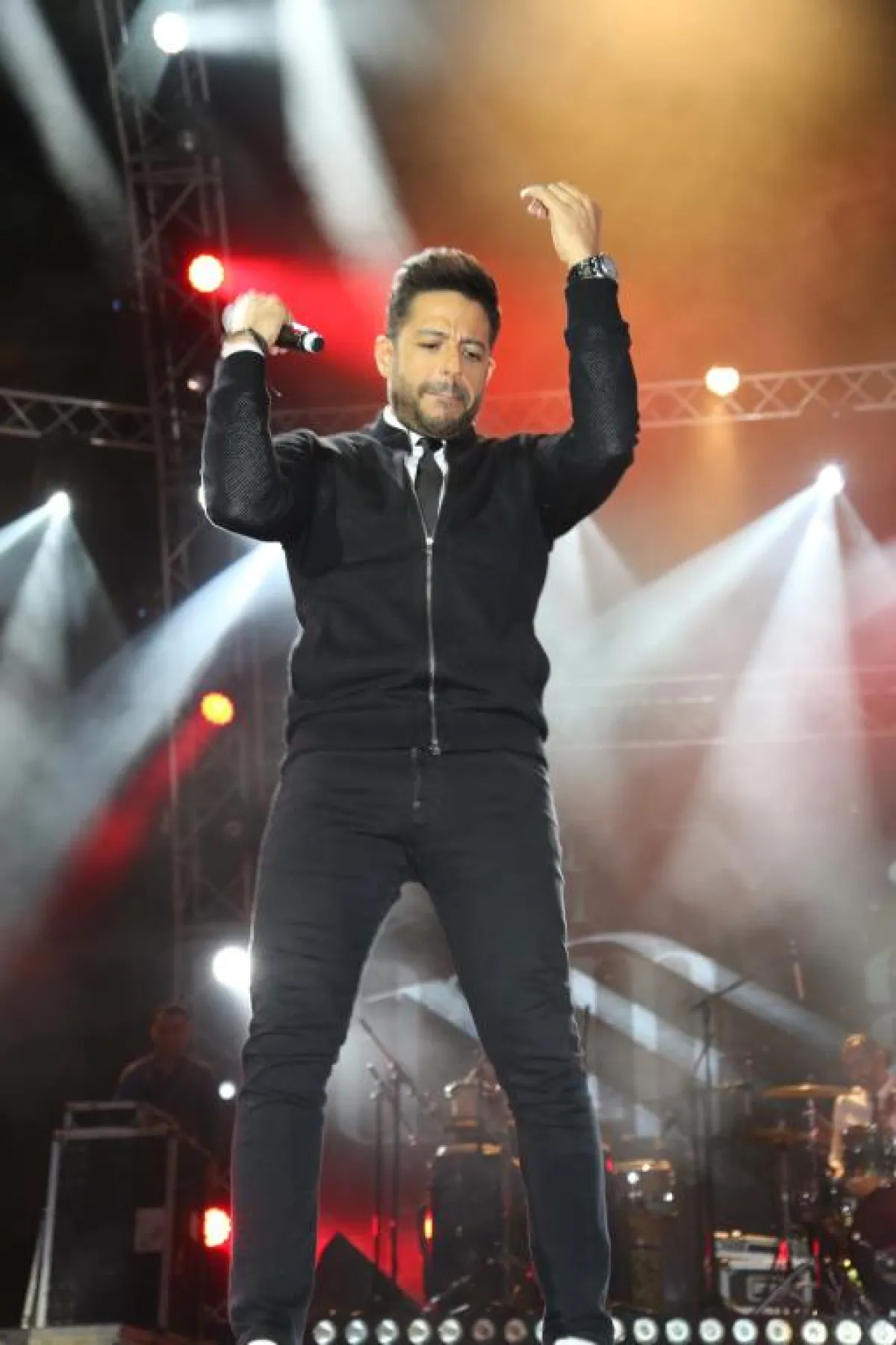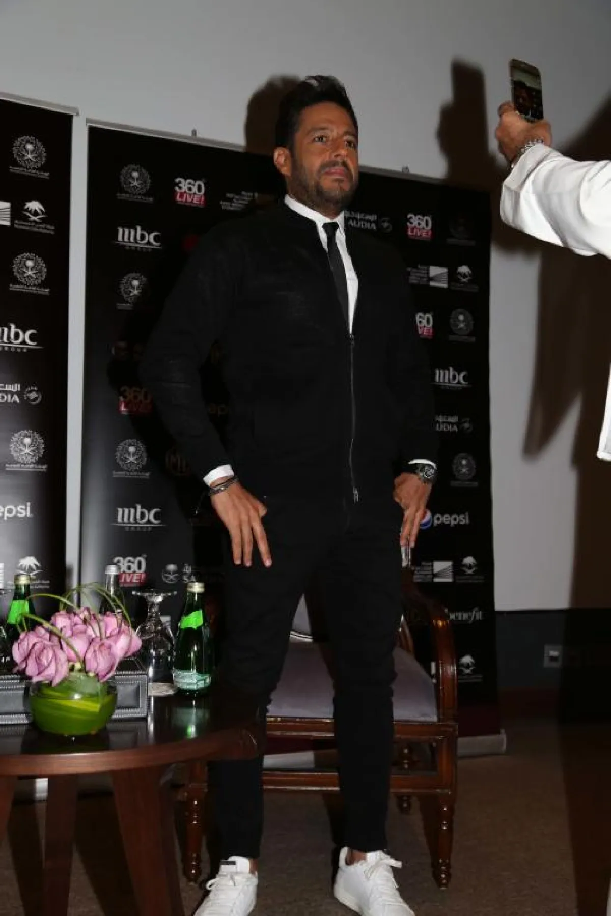 عند الساعة العاشرة والنصف وصل الفنان محمد حماقي إلى موقع المؤتمر الصحفي محاطاً برجال الحراسة والتنظيم، وما أن دلف إلى القاعة استقبل "سيدتي نت" مرحّباً، فقال: " مجلة "سيدتي". دي مجلة عزيزة علينا". وعندما سألناه كيف يصف إحساسه المسبق عن الحفلة، وانطباعه بشكل عام وزيارته للسعودية وماذا سيقدم الليلة من أغنيات، قال: " أن أقابل الجمهور السعودي في أول حفلة لي في السعودية إحساس لا يوصف، وهو شعور جميل، خاصة أنني كنت أتمنى هذه الفرصة من زمان، وها هي حصلت. وأنا أحب أن أشكر هيئة الترفيه على مساعدتهم لنا وإتاحة الفرصة للفنانين الالتقاء بالجمهور في السعودية. عندما تغني في مكان لأول مرّة بعد 15 سنة من الغناء يأتي شعور بأنني أغنّي لأول مرّة. وعادة، الفنان في حفلاته يغني من الجديد، إنما "النهارده" سأغني كل المطلوب من الأغاني التي قدّمتها خلال مشواري الفني، وأتمنى أن أسعد الجمهور وأقدّم لهم ما يليق بهم".