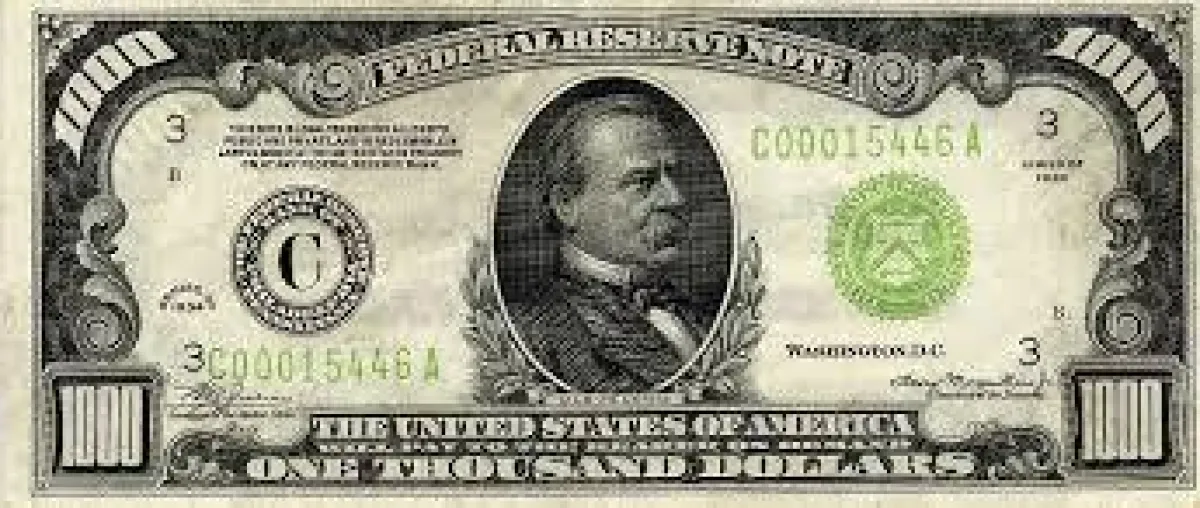 وقال دار "هيريتاج" للمزادات العلنيّة إنّ الورقة النقديّة من فئة الألف دولار حققت سعراً قياسيّاً بين العملات، بعد أن بيعت بمليونين و585 ألف دولار بمزاد علنيّ في شامبور، مؤكّداً وجود ورقتين نقديّتين فقط من هذه الفئة، إحدهما بيعت في مزاد علنيّ عام 1944 لقاء ألف و350 دولاراً فقط.