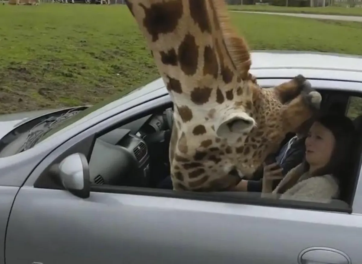 تفاجأ زوجان خلال رحلة سفاري في حديقة حيوان مفتوحة في "ويست ميدلاند" West Midlands Safari Park البريطانية بزرافة "حشرية" تدخل رأسها الى مقصورة القيادة بحثاً عن طعام معهما، وعندما حاولت الزوجة اقفال الزجاج لإخافة الزرافة، باءت محاولتها بالفشل حيث لم يتمكن الزجاج من الحفاظ على صلابته بمواجهة رأس الزرافة وتحطم على الفور.