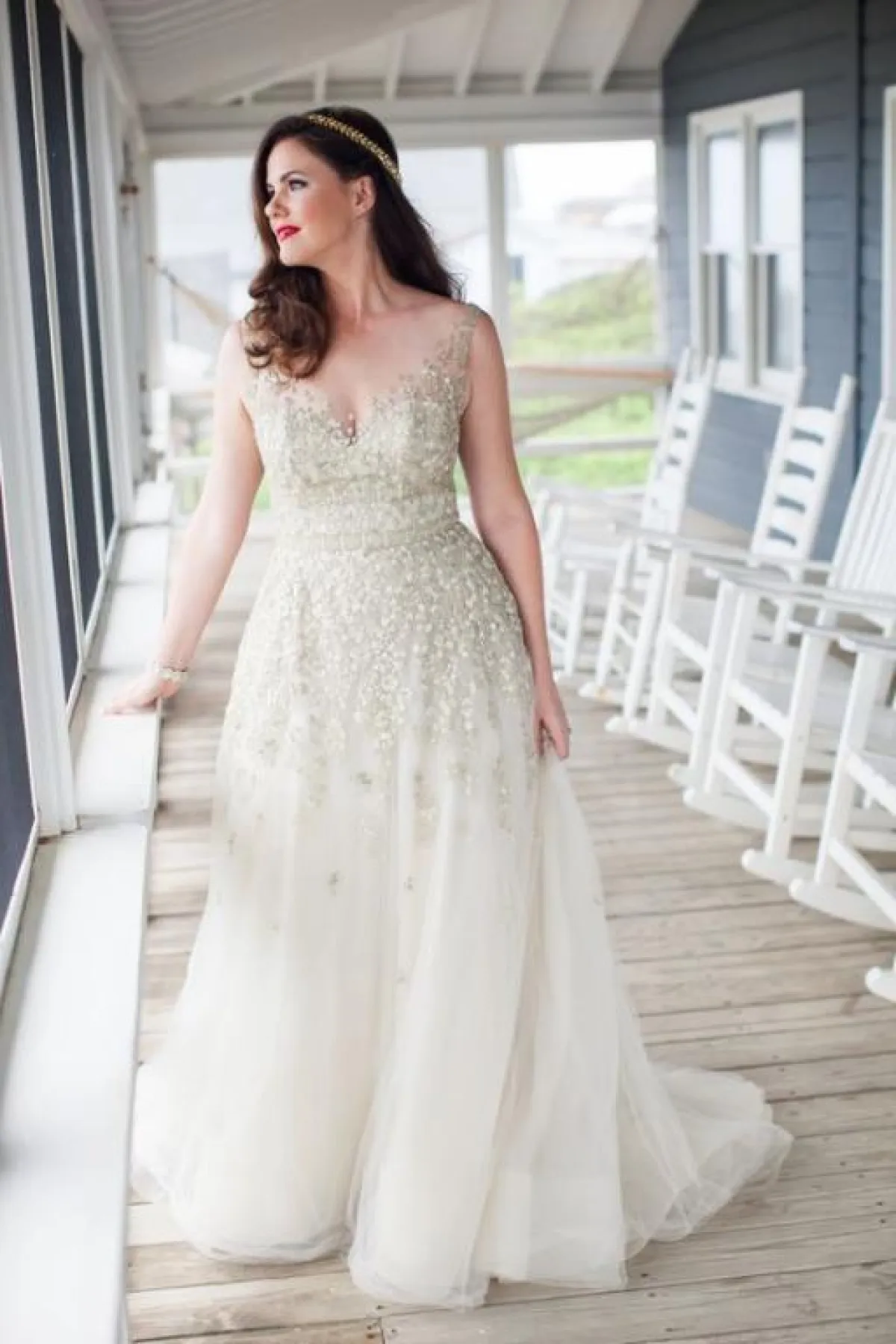 - اتجهي إلى فساتين الزفاف ذات التطريزات الهادئة؛ لأن التطريزات الكثيفة ستزيد من حجم جسدك، وستلفت الأنظار إليه.
