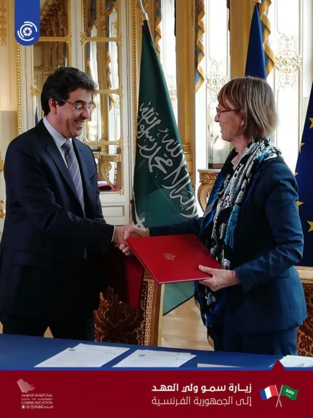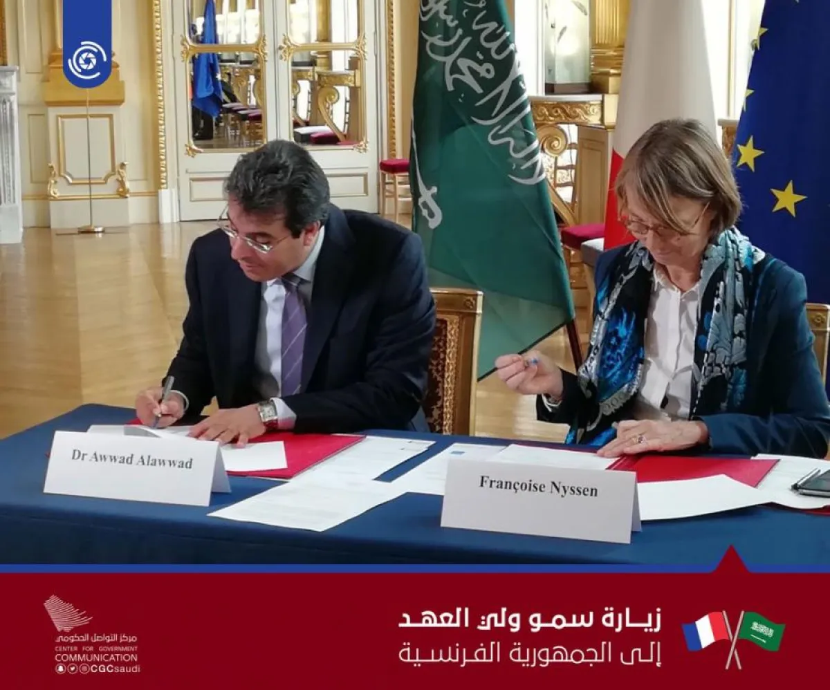 وقع وزير الثقافة والإعلام مذكرات تفاهم مع وزيرة الثقافة الفرنسية فرانسواز نيسين هوتركز، على الأدب والموسيقى، والفنون، وصناعة الأفلام.