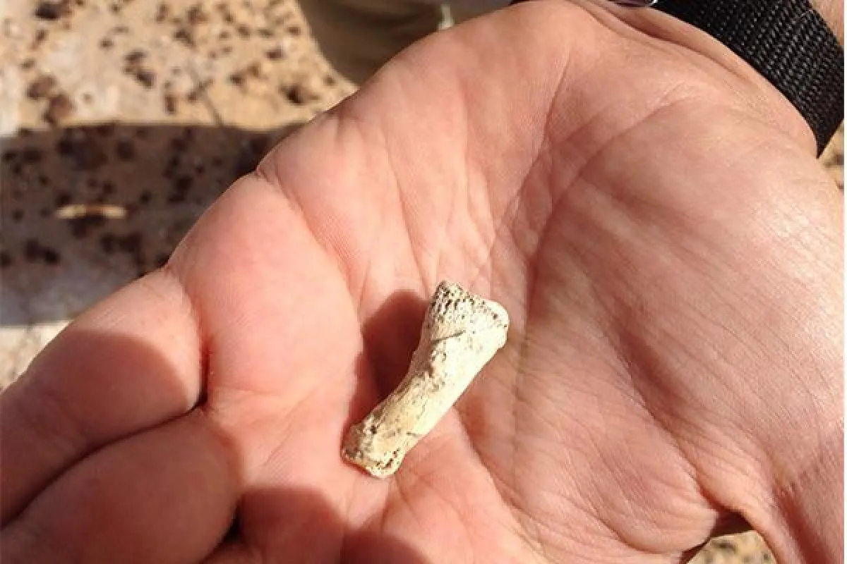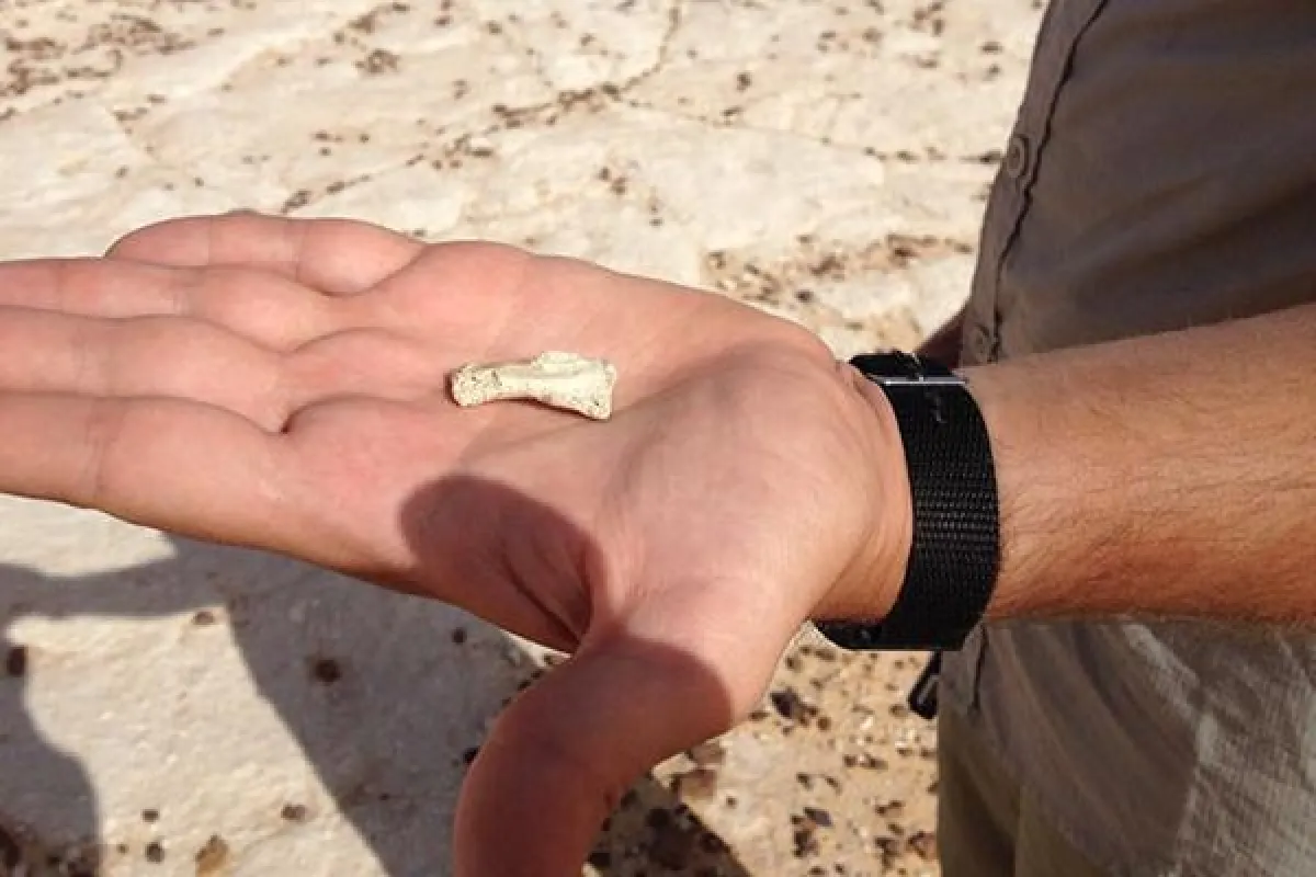 وأوضح العتيبي، أن الأحفورة المكتشفة عبارة عن عظمة عقلة من الإصبع الأوسط، يتجاوز طولها 32 مليمتراً، وقطرها حوالي 9 مليمترات، وحُفظت بشكل جيد في رسوبيات بحيرات قديمة من عصر "الهولوسين"، وسط الكثبان الرملية في صحراء "النفوذ"، وتعرف المنطقة التي تم العثور فيها على الأحفورة باسم "بحيرة الوسطى القديمة"، وتبعد 140 كيلومتراً شرق محافظة تيماء في منطقة تبوك.