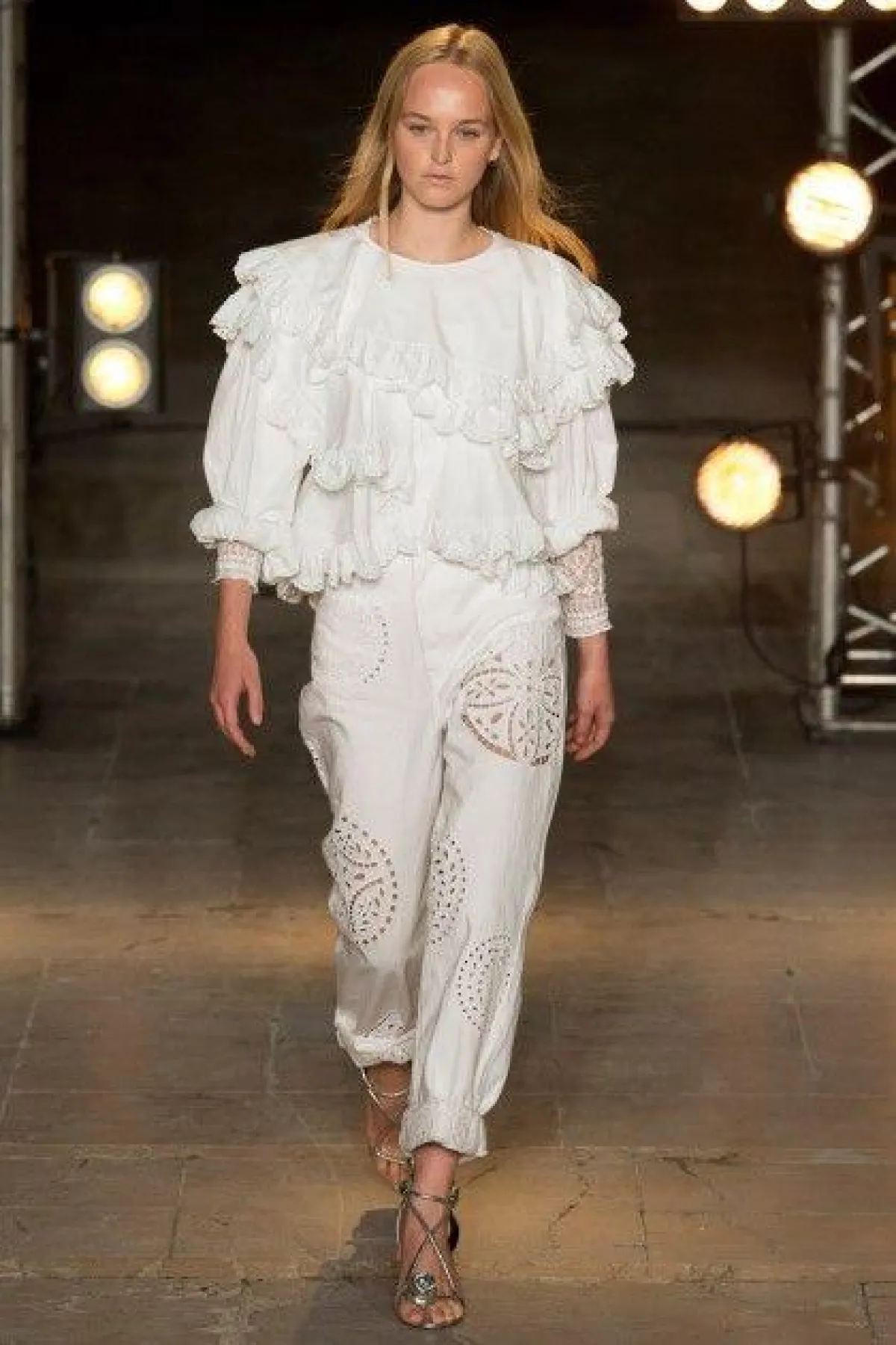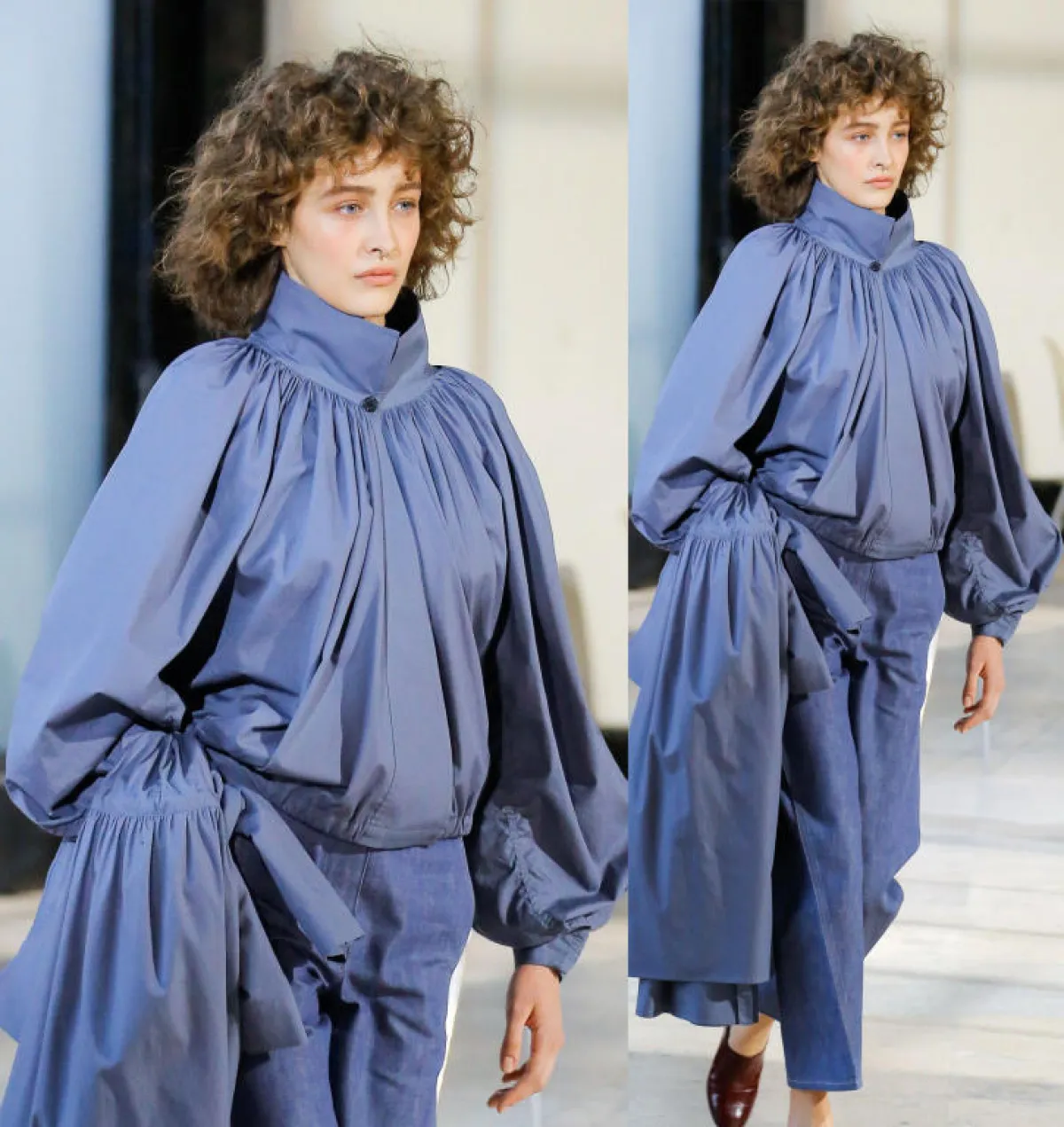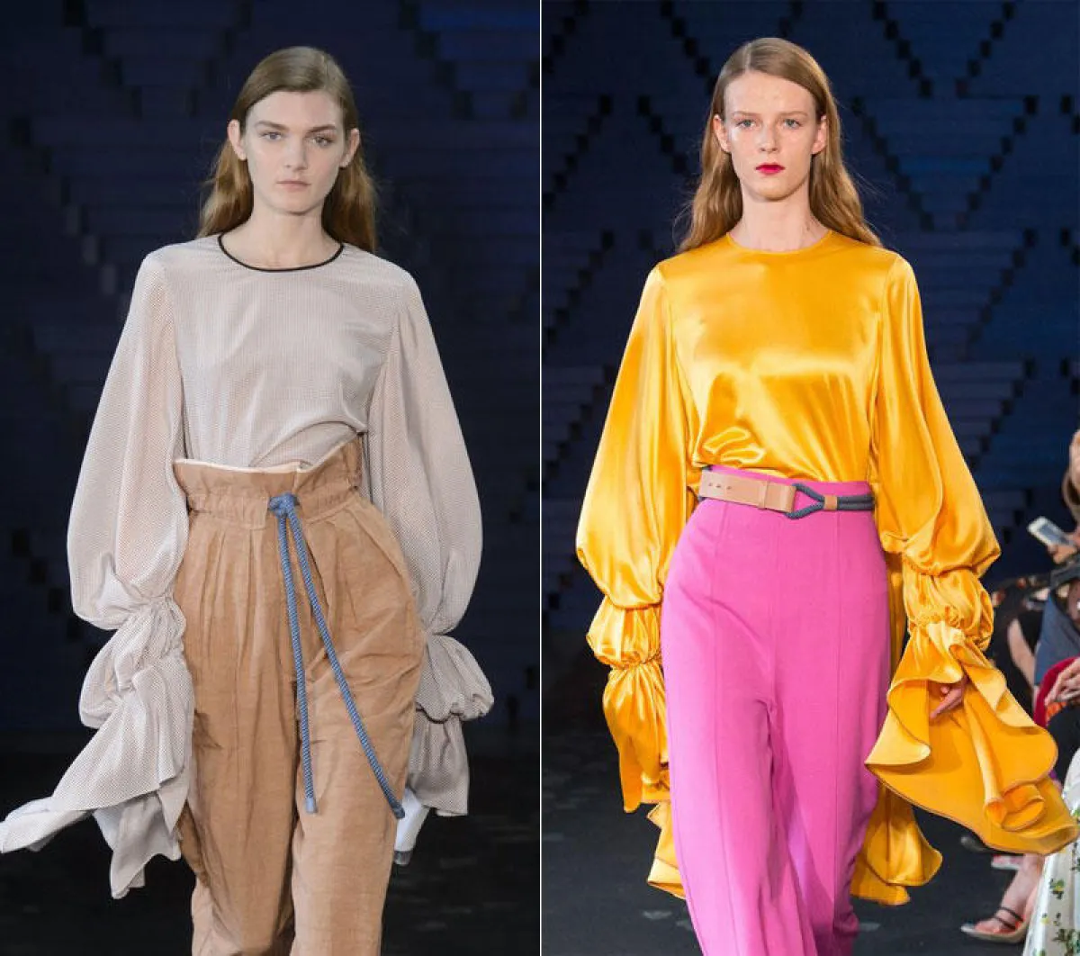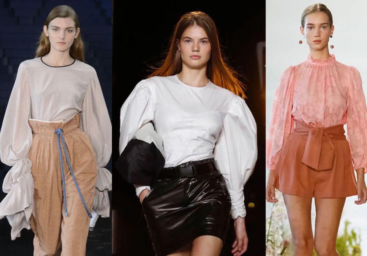 كما ظهرت صيحة البلايز بالأكمام الواسعة من أعلى، والتي تبدو محتشمة ولا تبرز تفاصيل الجسم، مثل كنزة الكشاكش من Lemaire، والكنزة البيضاء من إيزابيل مارنت Isabel Marant، ويحتاج هذا الموديل إلى سراويل واسعة.