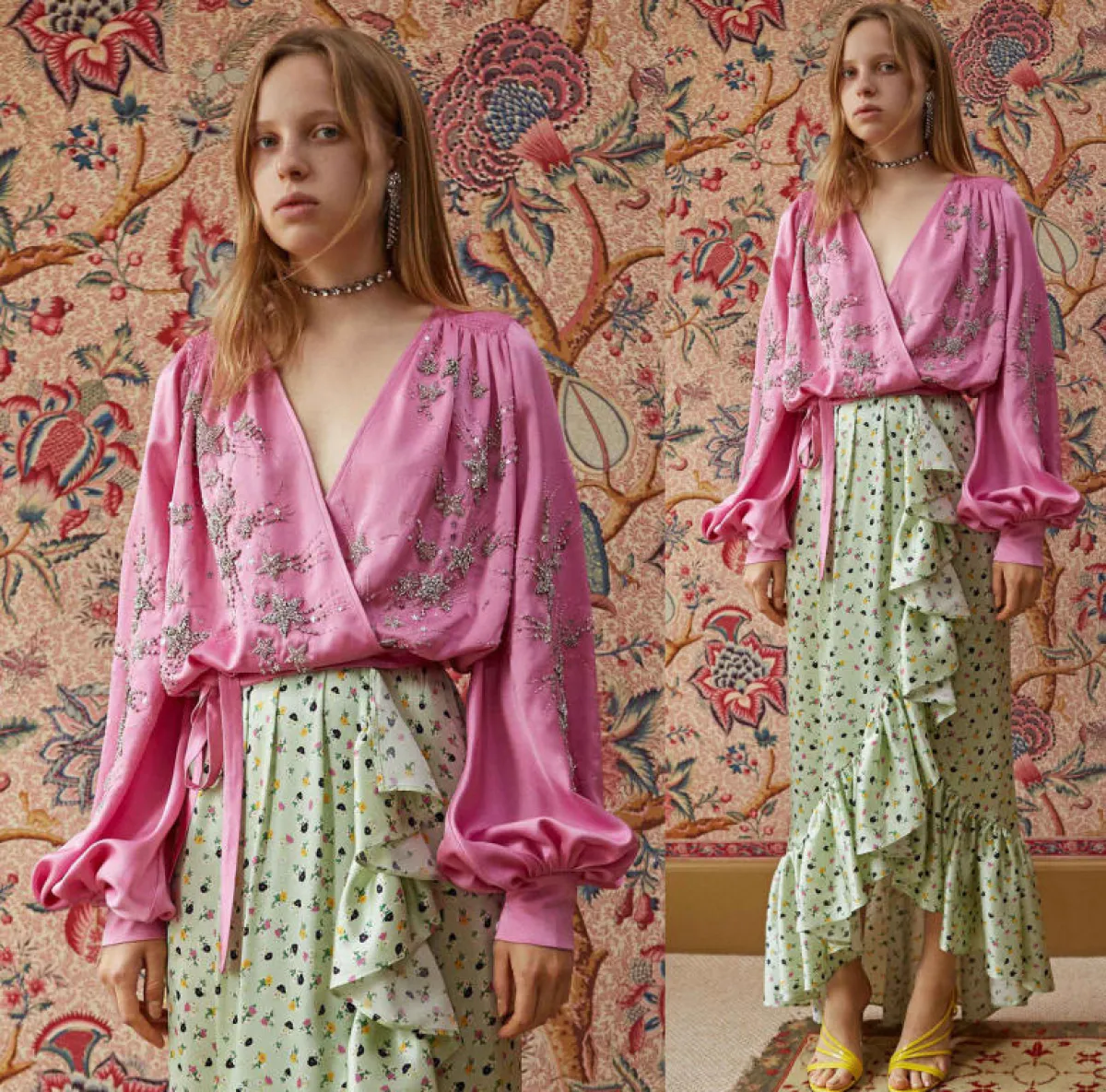 أيضاً قدمت ماركة Ulla Johnson بلايز بتصاميم وألوان ناعمة وأكمام مستوحاة من الجرس، ستبدو جذابة مع تنانير طويلة بنقشات مستوحاة من الطبيعة.