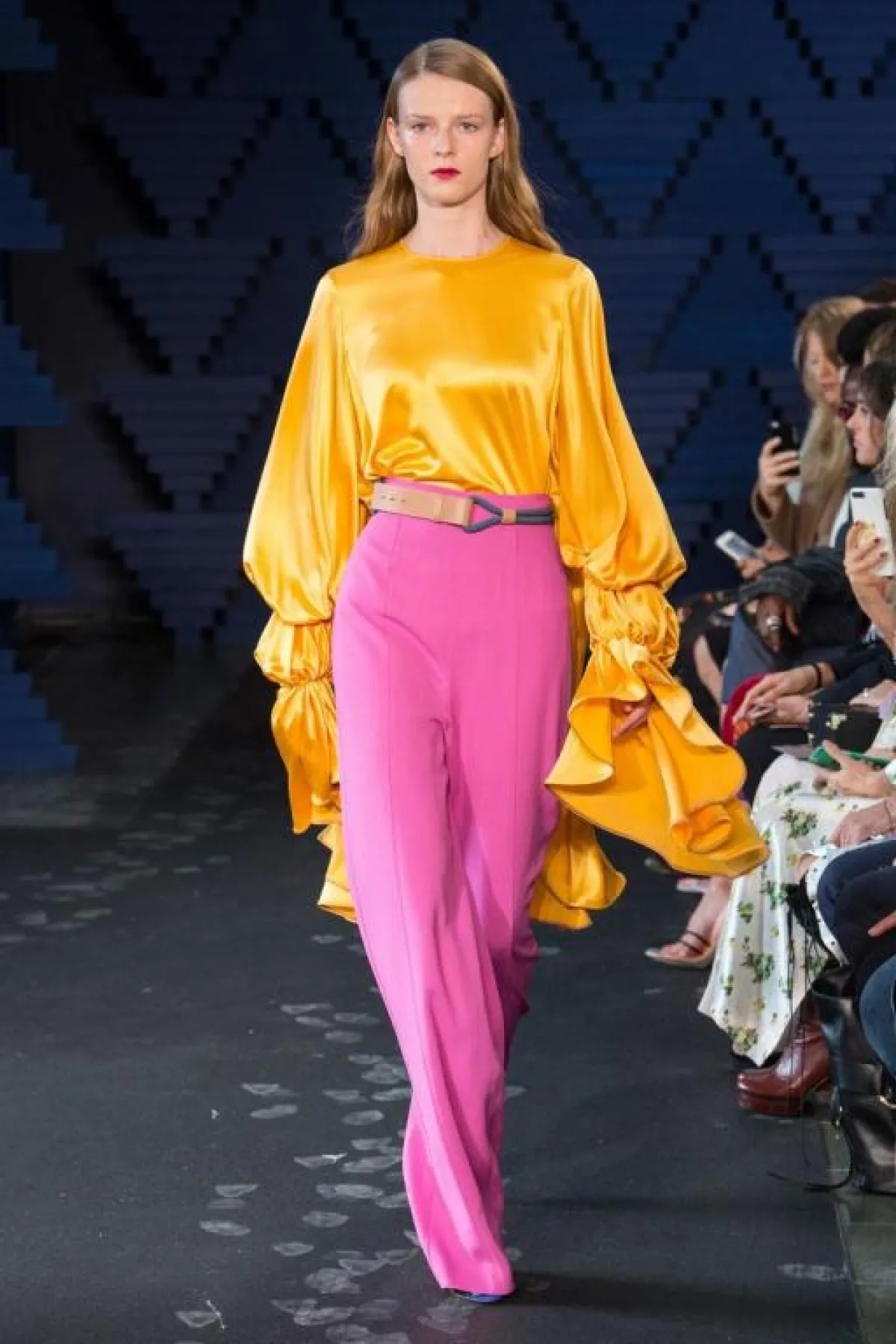 من أبرز تصاميم بلايز للمحجبات تلك التي قدمتها دار Roksanda، المصنوعة من قماش حريري، مع أكمام طويلة جداً مع كشاكش، والتي يمكن تنسيقها مع سراويل مرتفعة الخصر.
