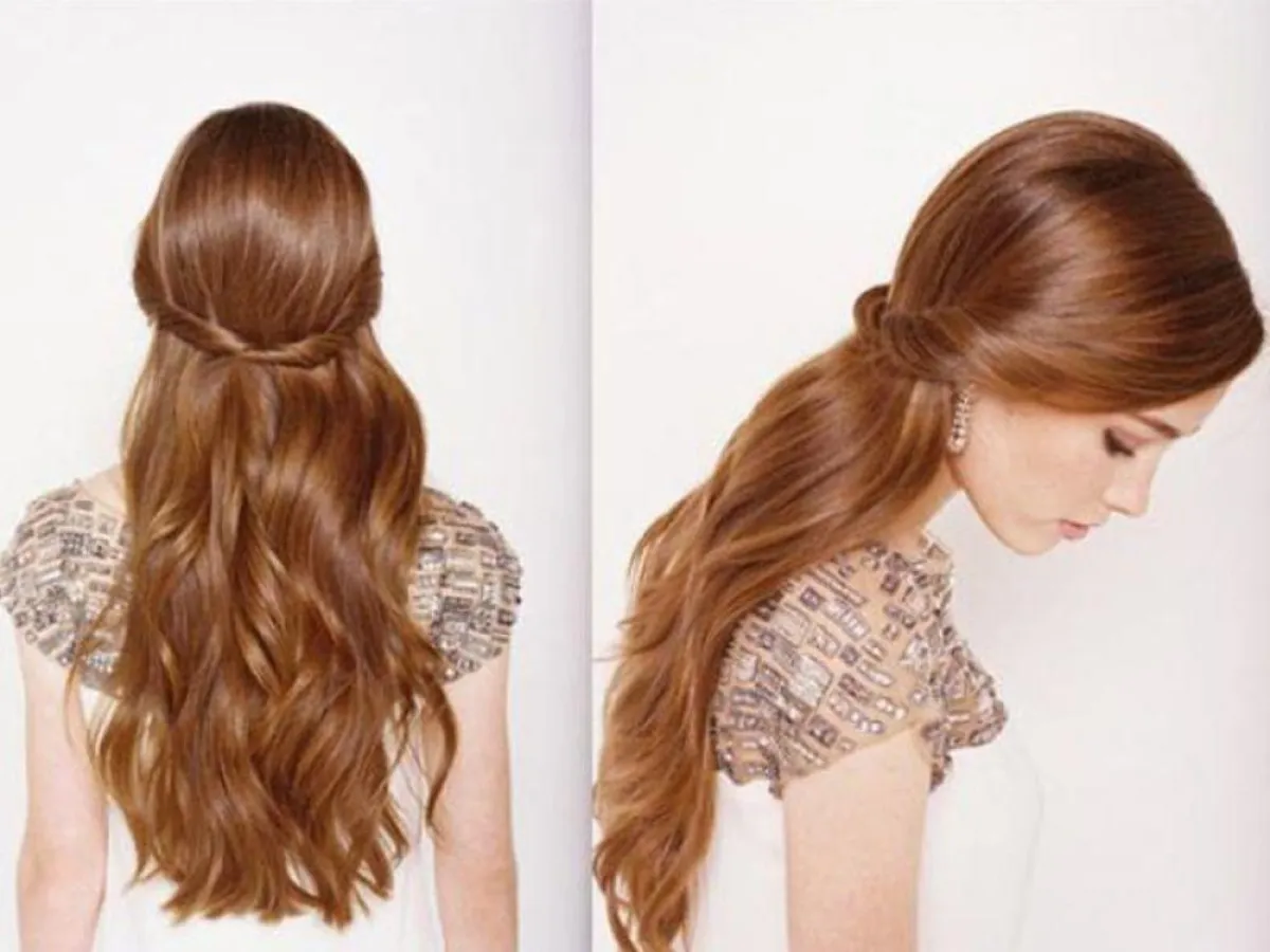 لإطلالة غاية في الأناقة اجمعي خصلتين أماميتين من شعرك، لفيها بطريقة ملتوية إلى منتصف شعرك ثم ثبتيها بالدبابيس الصغيرة وتألقي.