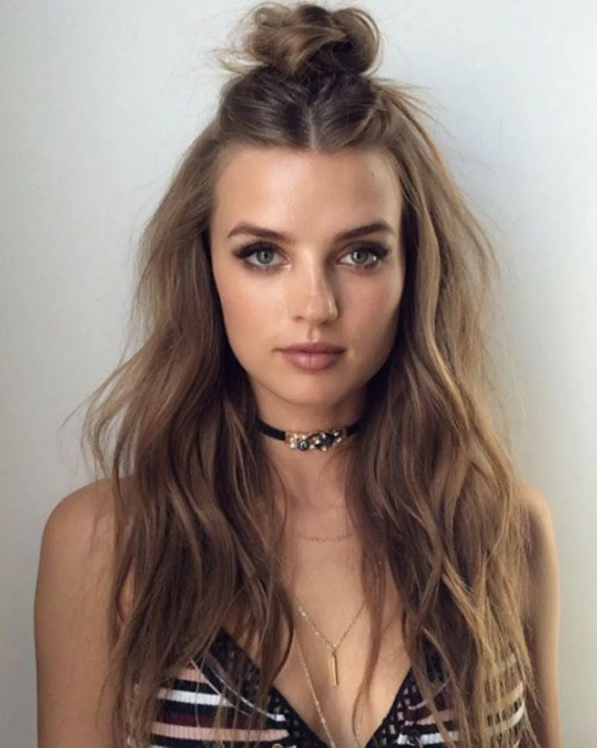 هذه الإطلالة رائجة جدًا وبسيطة للغاية، لن تحتاج منك سوى بعض دبابيس الشعر، قسمي شعرك إلى ثلاثة أقسام، لفي القسم الأوسط على هيئة كعكة علوية أمامية وثبتيها جيدًا بالدبابيس الصغيرة.