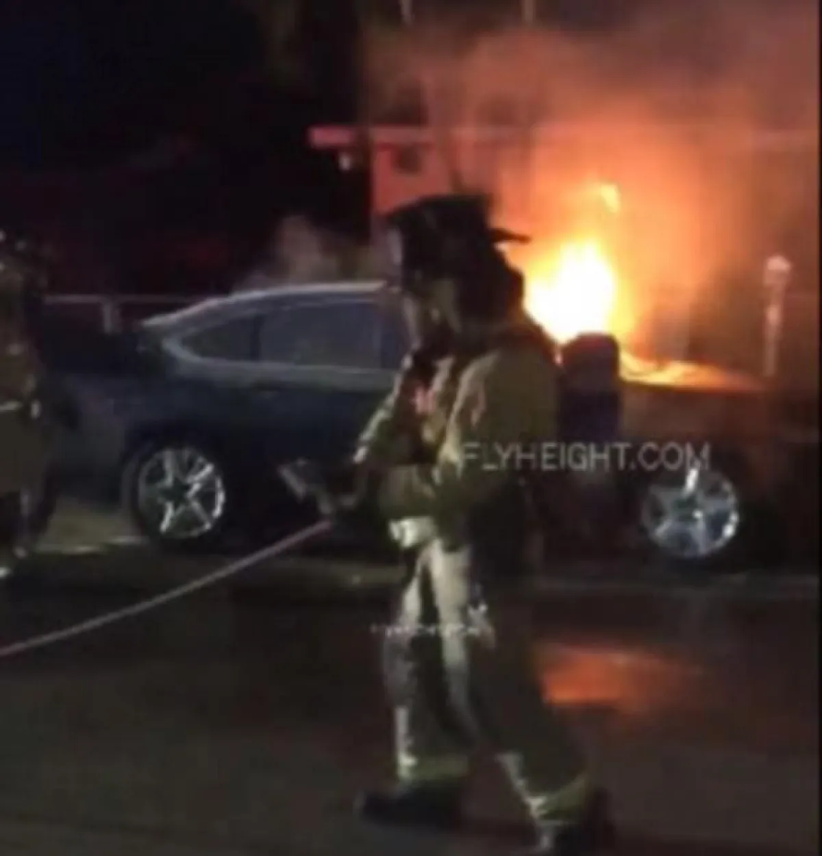 وتظهر السيدة في احدى الصور وهي تحاول تحطيم زجاج السيارة، وفي صورة أخرى تظهر السيارة مشتعلة ان اضرمت النار فيها، ولم تعرف تحديداً المنطقة التي وقعت فيها الحادثة.