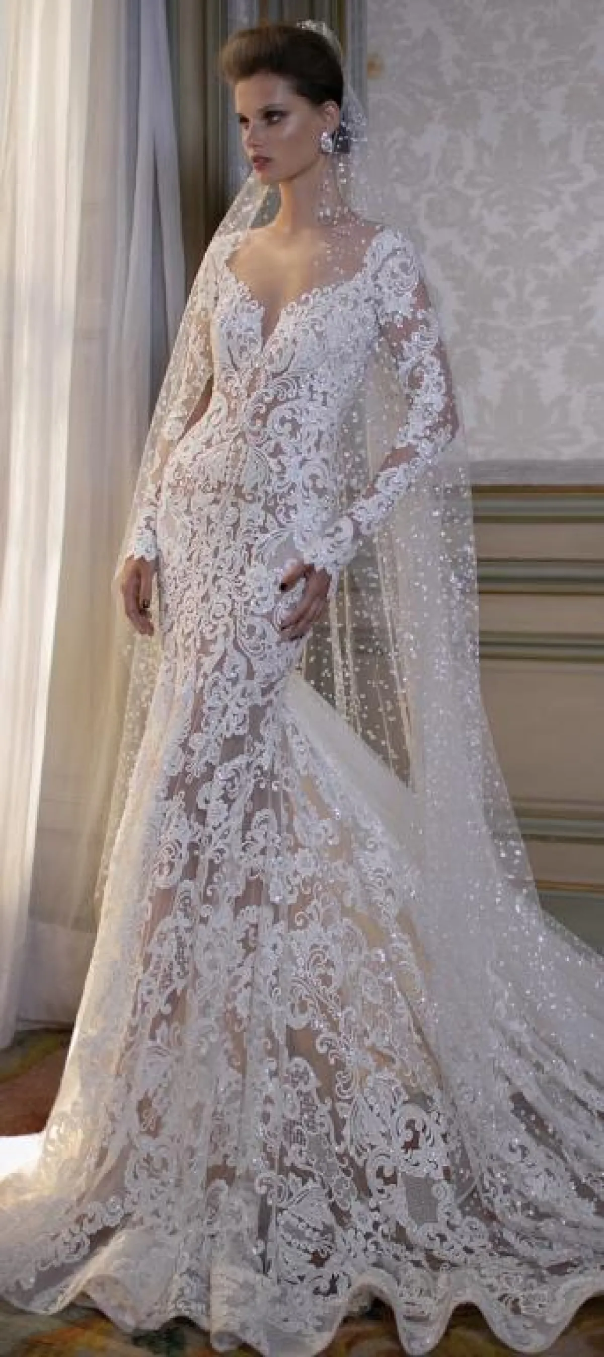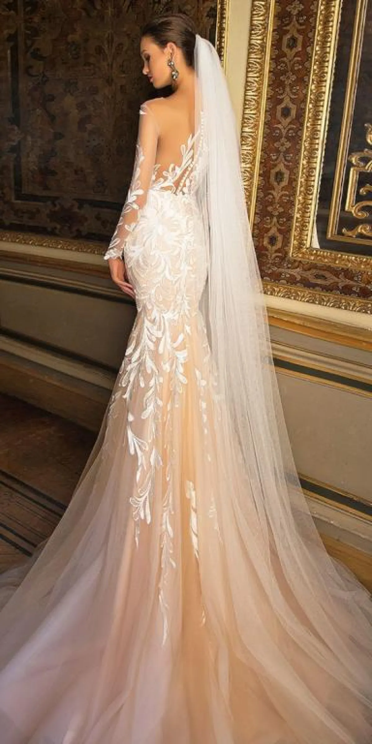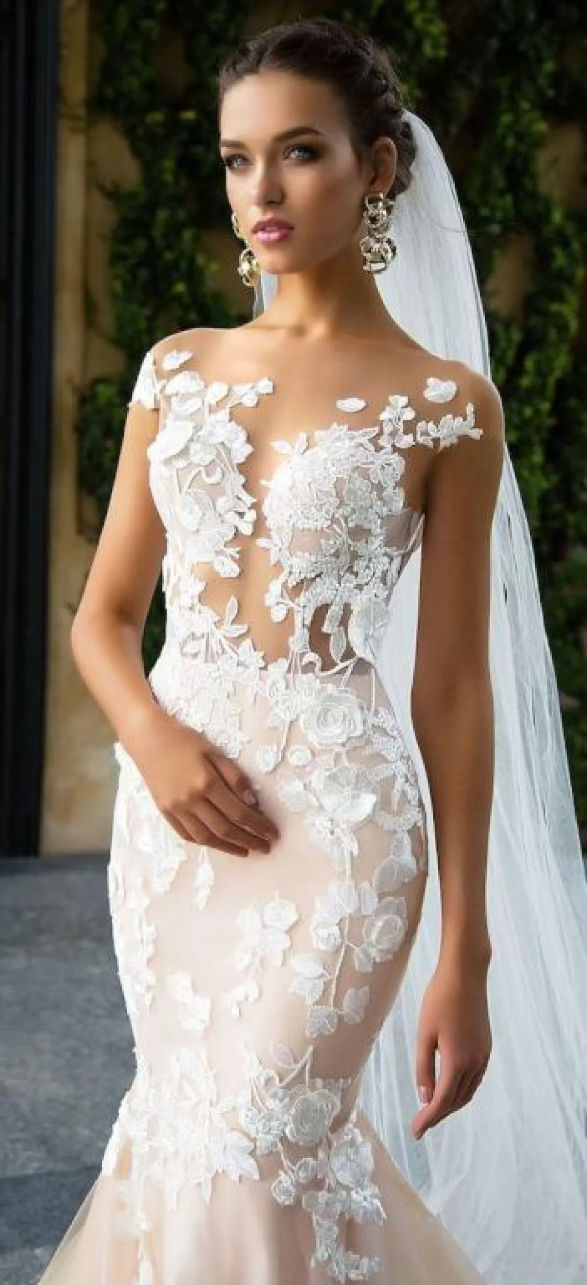 إذا كنتِ تتمتعين بشخصية جريئة، فبإمكانكِ اختيار فستان السيرين Mermaid ذي التفاصيل الواضحة بالتول والأورغانزا والدانتيل، بالورود أو فروع الأشجار، مع طرحة طويلة مطرزة بالأحجار اللامعة البارزة، أو بالدانتيل الناعم.