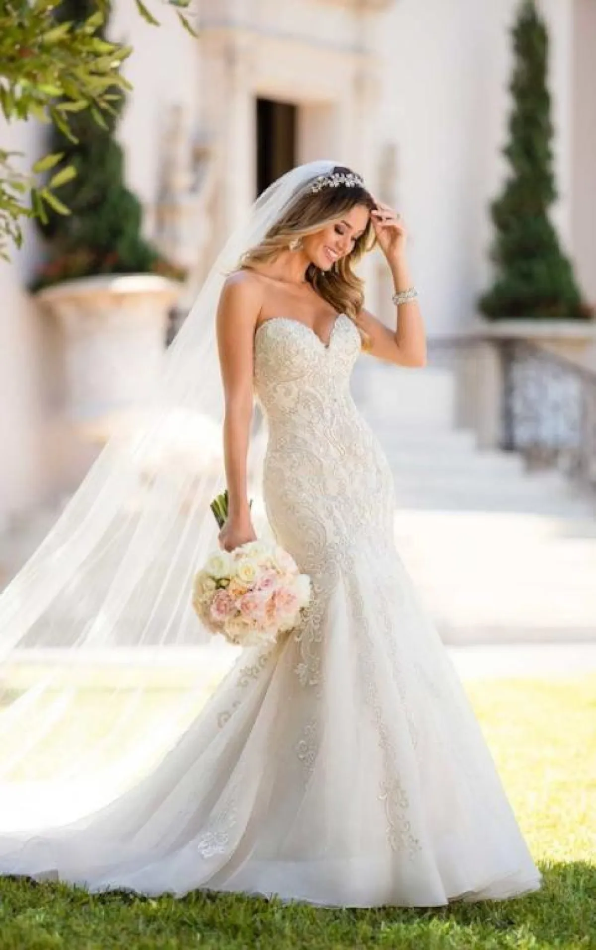 تصميم السيرين Mermaid لفساتين الزفاف، من الموديلات المتربعة على عرش الموضة، تناسب جسد كثير من الفتيات، بخاصة النحيفات والطويلات، إذ إنها تُبرز شكل أجسادهنّ، وتمنحهنّ أنوثة ليس لها حدود، وإذا وقع اختياركِ على فستان بهذه القصّة، عليكِ اختيار طُرح عروس مناسبة لفستانكِ بحسب الخامة والشكل ككل.