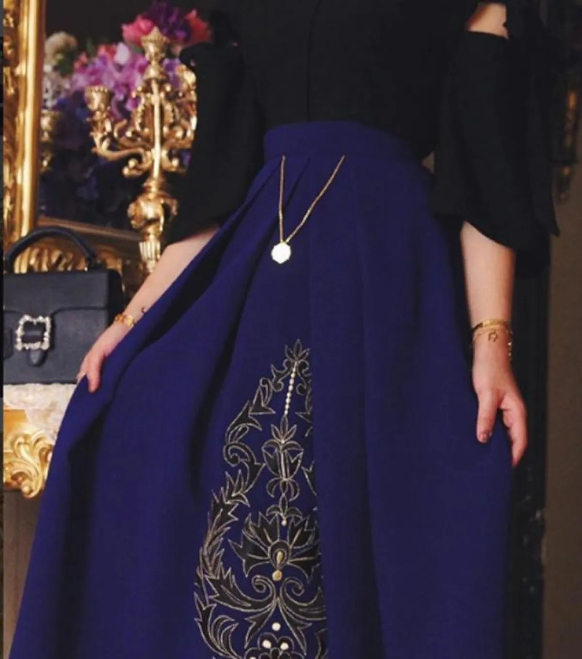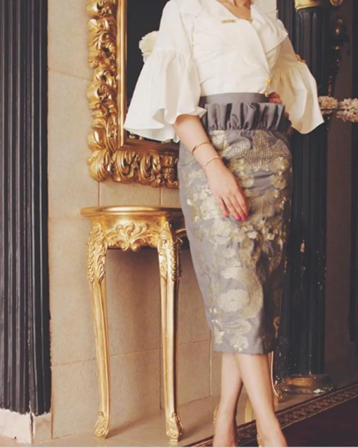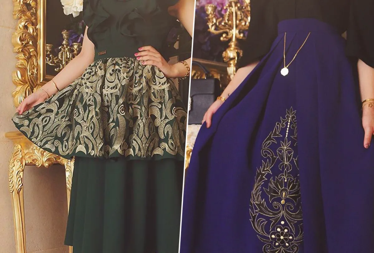 اختاري تنورة باللون الرصاصي ذات الكشاكش، إذا كنت تتمتعين بجسم ممشوق، مع التطريزات الذهبية التي تتربع على عرش الموضة هذا العام.