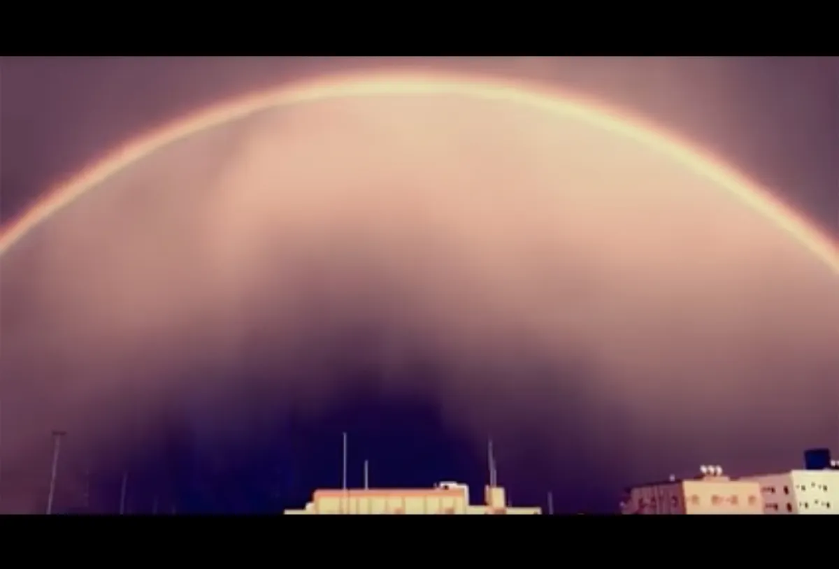 وأظهر الفيديو المتداول مشهدًا رائعًا للطيف بالألوان الزاهية خلال المساء، في منظر جذب أنظار المارة إليه.