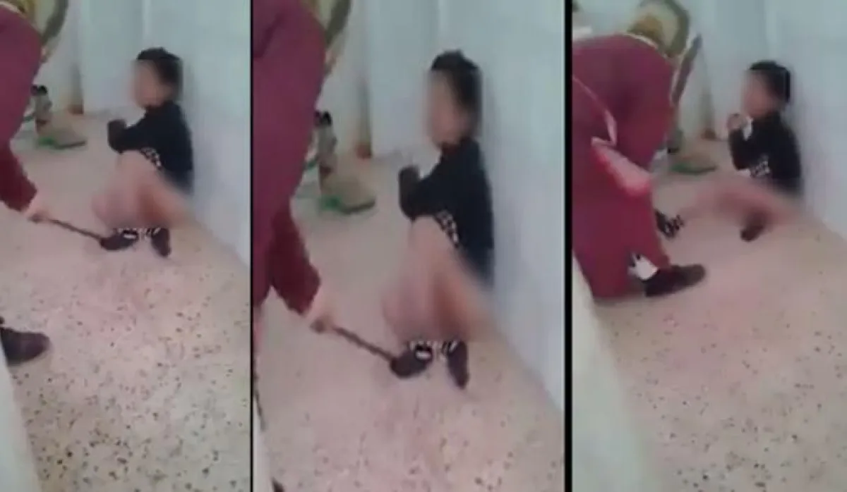 ويظهر المقطع الصادم والذي وثقه شقيق الطفل وقام بإرساله إلى والدته، الجدة القاسية وهي تضرب حفيدها الصغير الذي لا يتجاوز عمره 7 سنوات بكل قوّتها على كامل أنحاء جسده بواسطة عصا غليظة، بينما ظل الطفل يصرخ بقوة من شدة ألم الضرب، متوسلاً إليها أن تتركه وتعفو عنه، ولم تكتف الجدة بذلك، بل توجهت إلى المطبخ وقامت بتسخين سكين بالنار لتعود إليه وتطلب منه نزع ثيابه، ثم تبدأ في حرقه بأماكن حسّاسة من جسمه، رغم محاولة الطفل الفرار بجسده من تعذيبها.