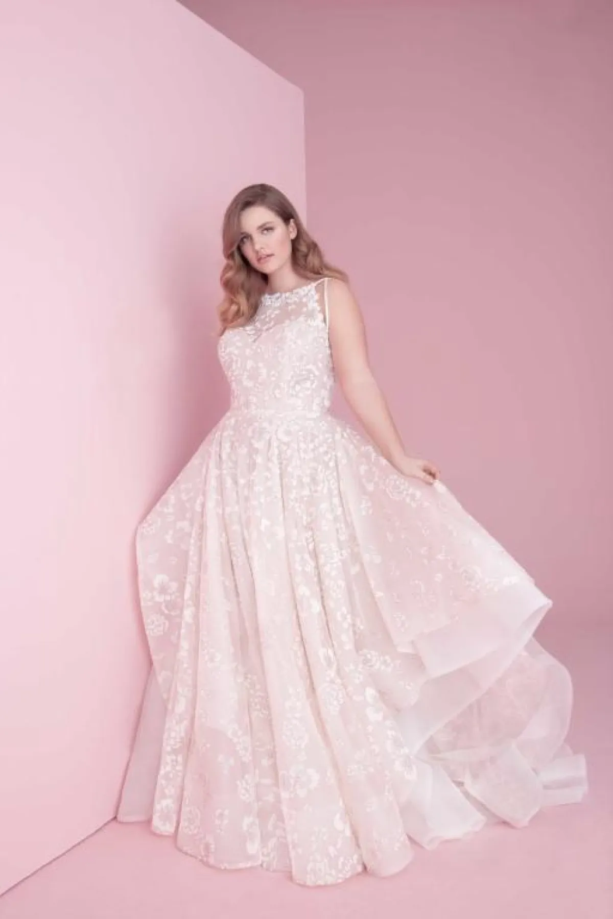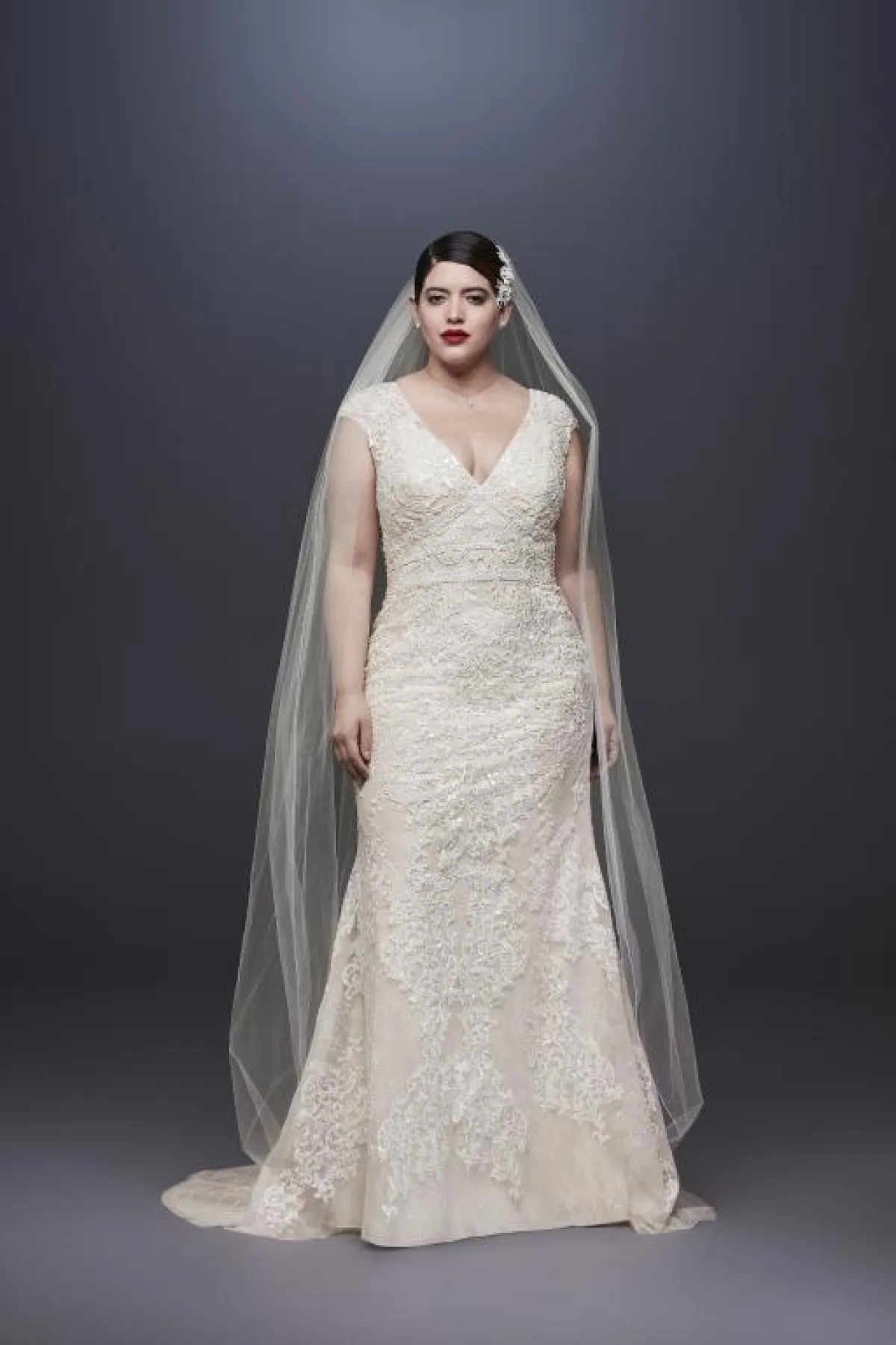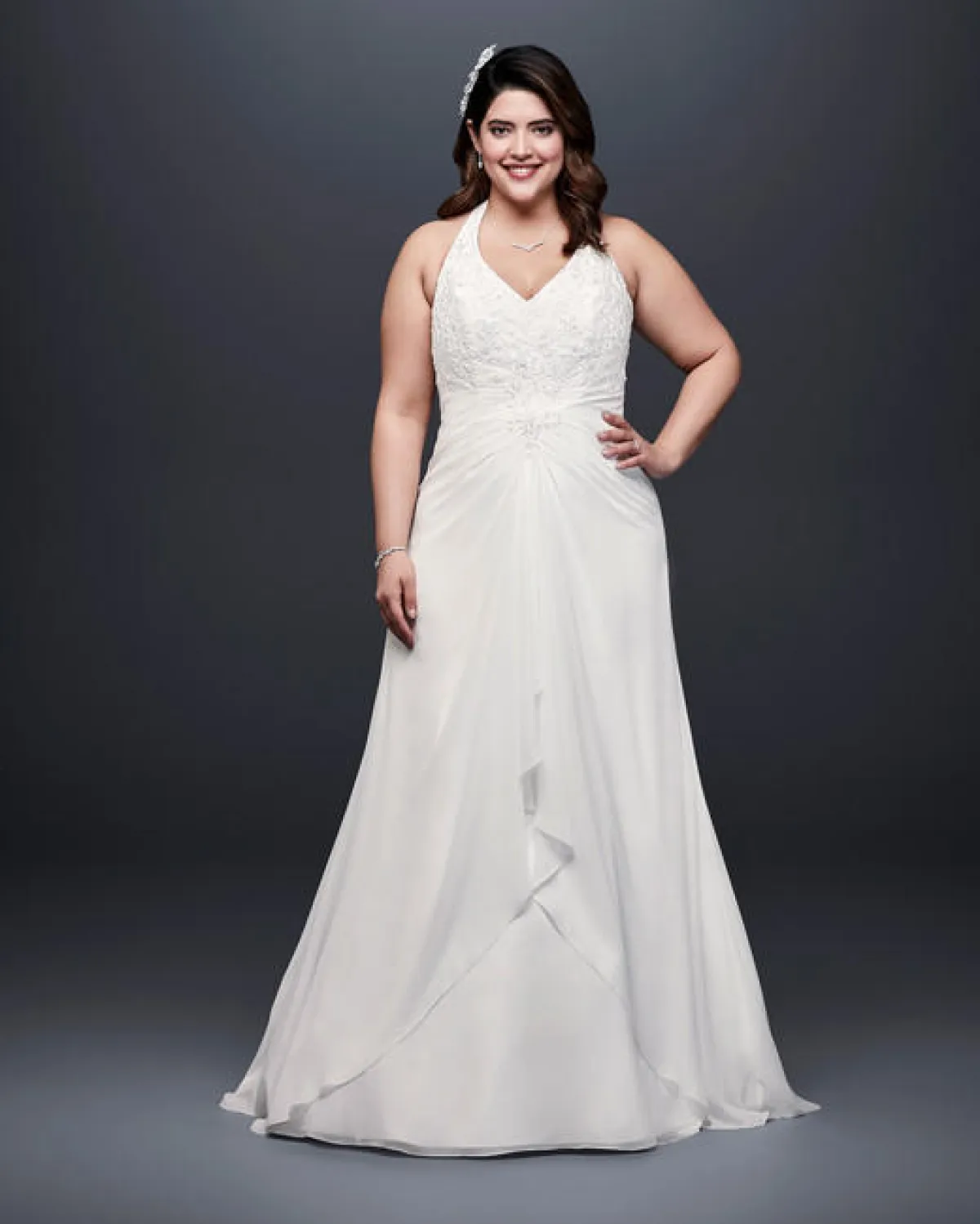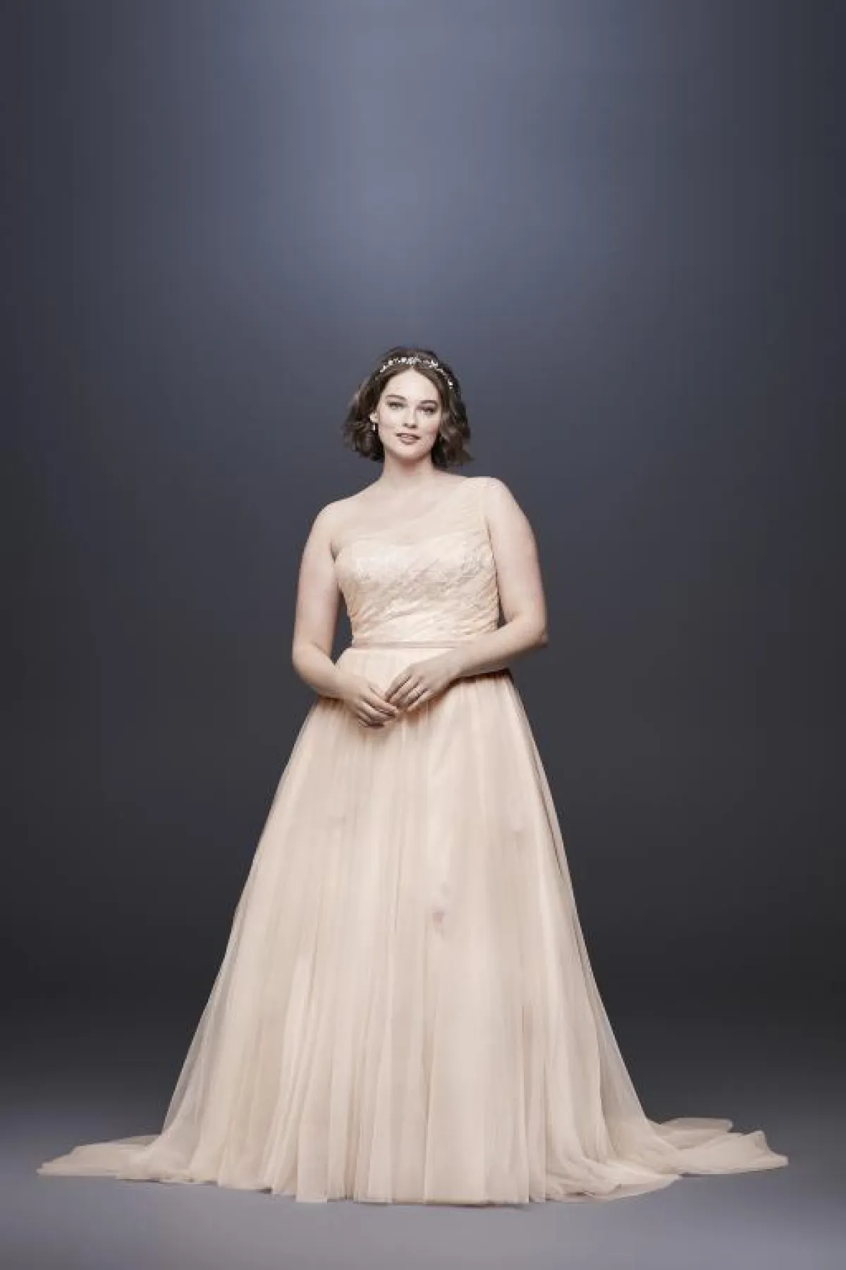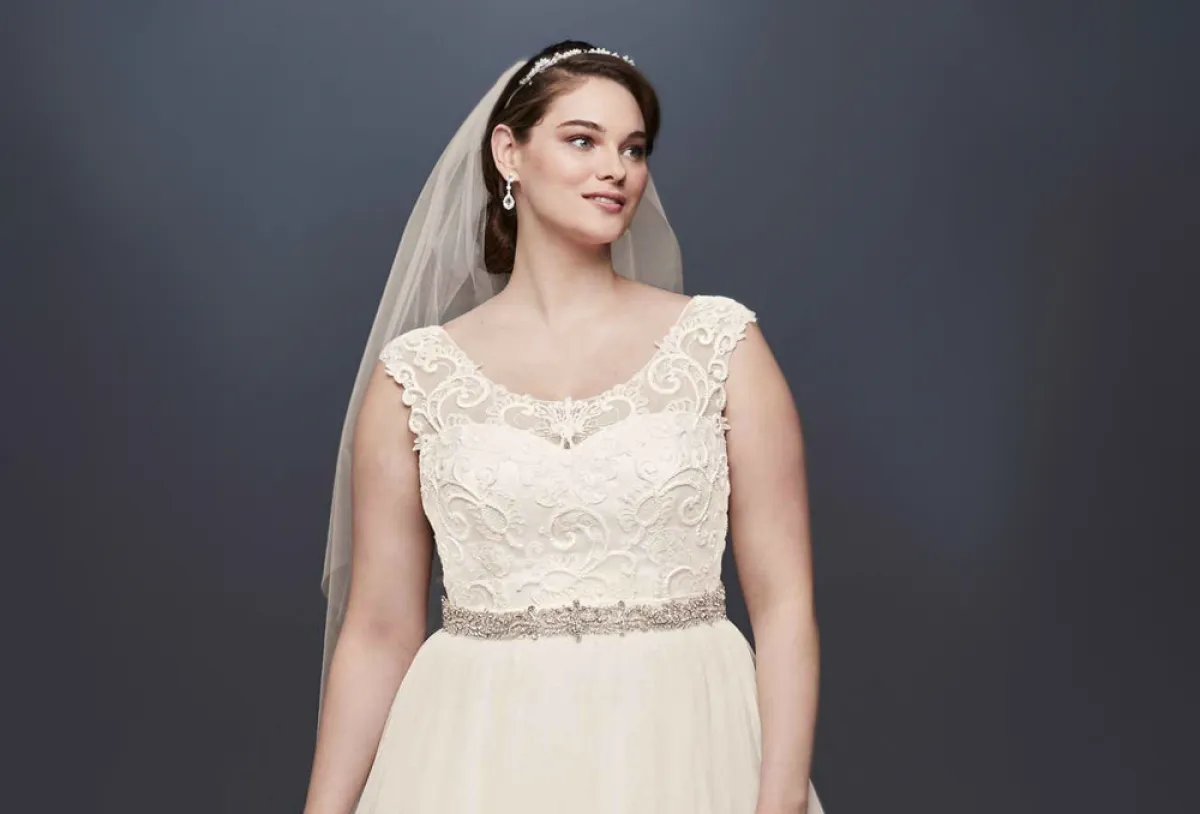 خصصت علامة فساتين زفاف David Bridal موديلات للعروس الممتلئة، سواء التصاميم الخاصة بها أو تحت اسم ماركات أخرى.